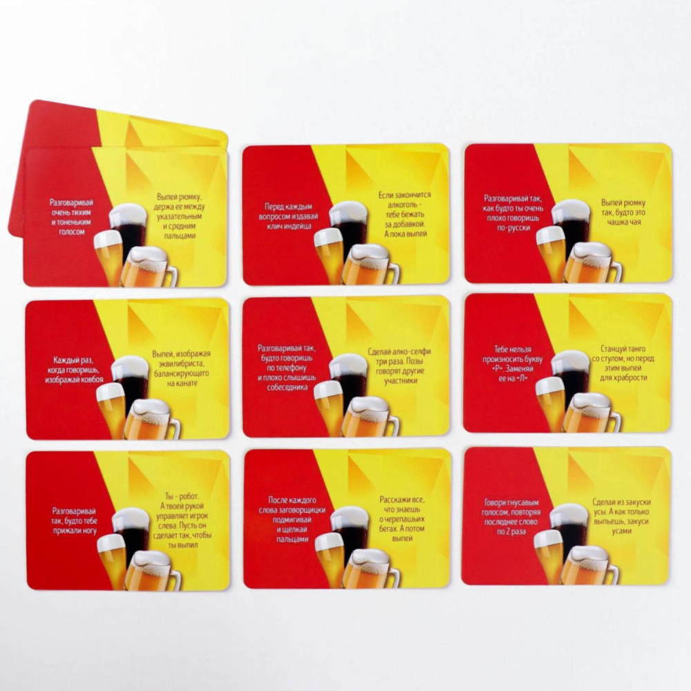 Чтобы было ещё веселее, перед началом игры вытягивайте бонусные карточки! На них указано условие, которому вы должны следовать. На второй половине карточки размещено задание, которое нужно выполнить, если угадать слово не удастся. Разговаривайте нараспев, выпивайте и веселитесь!