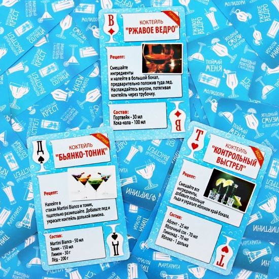 Эти карты будут просто незаменимы для всякого, кто обожает весело проводить время в кругу друзей! Повысьте градус веселья в своей компании, используя этот алкогольный микс!