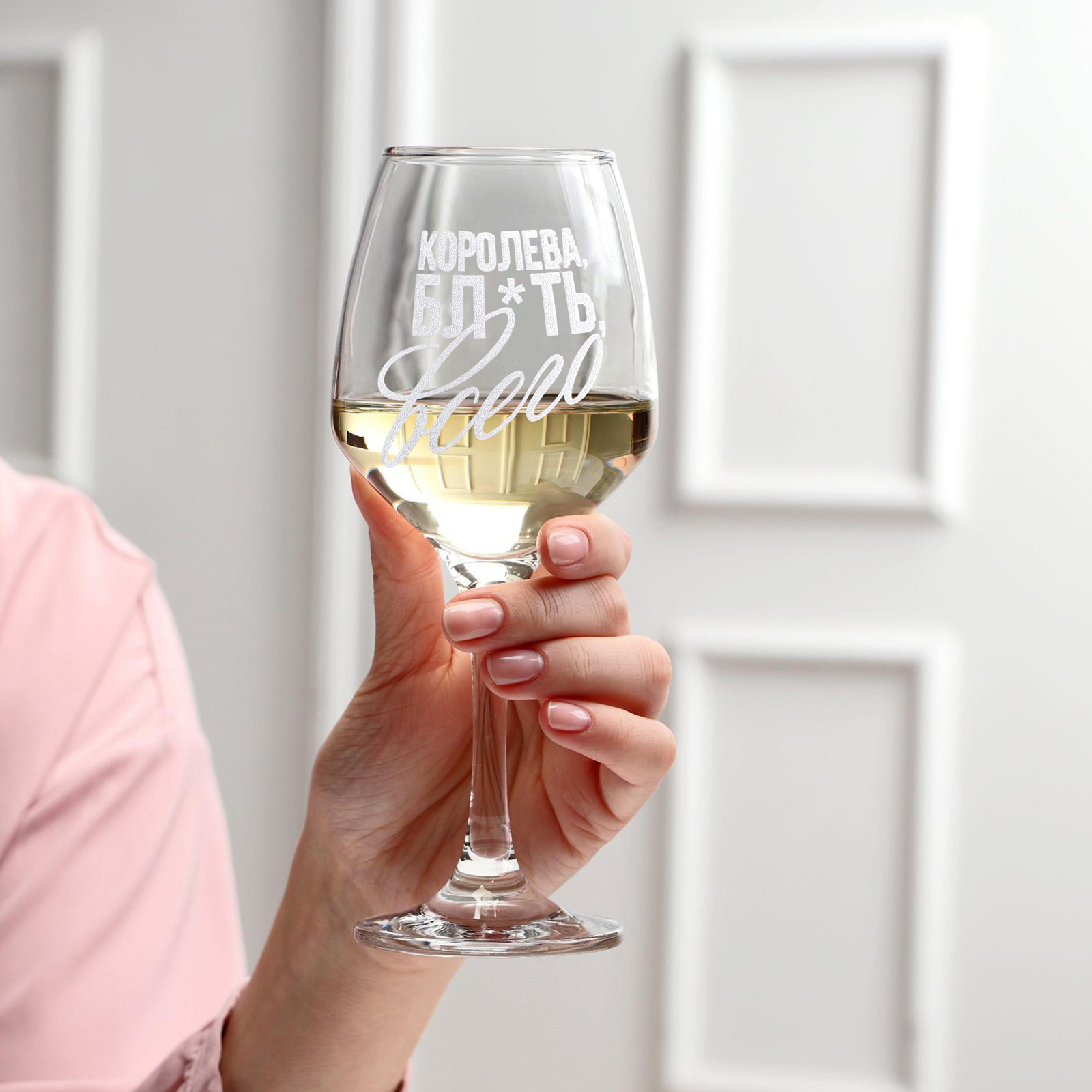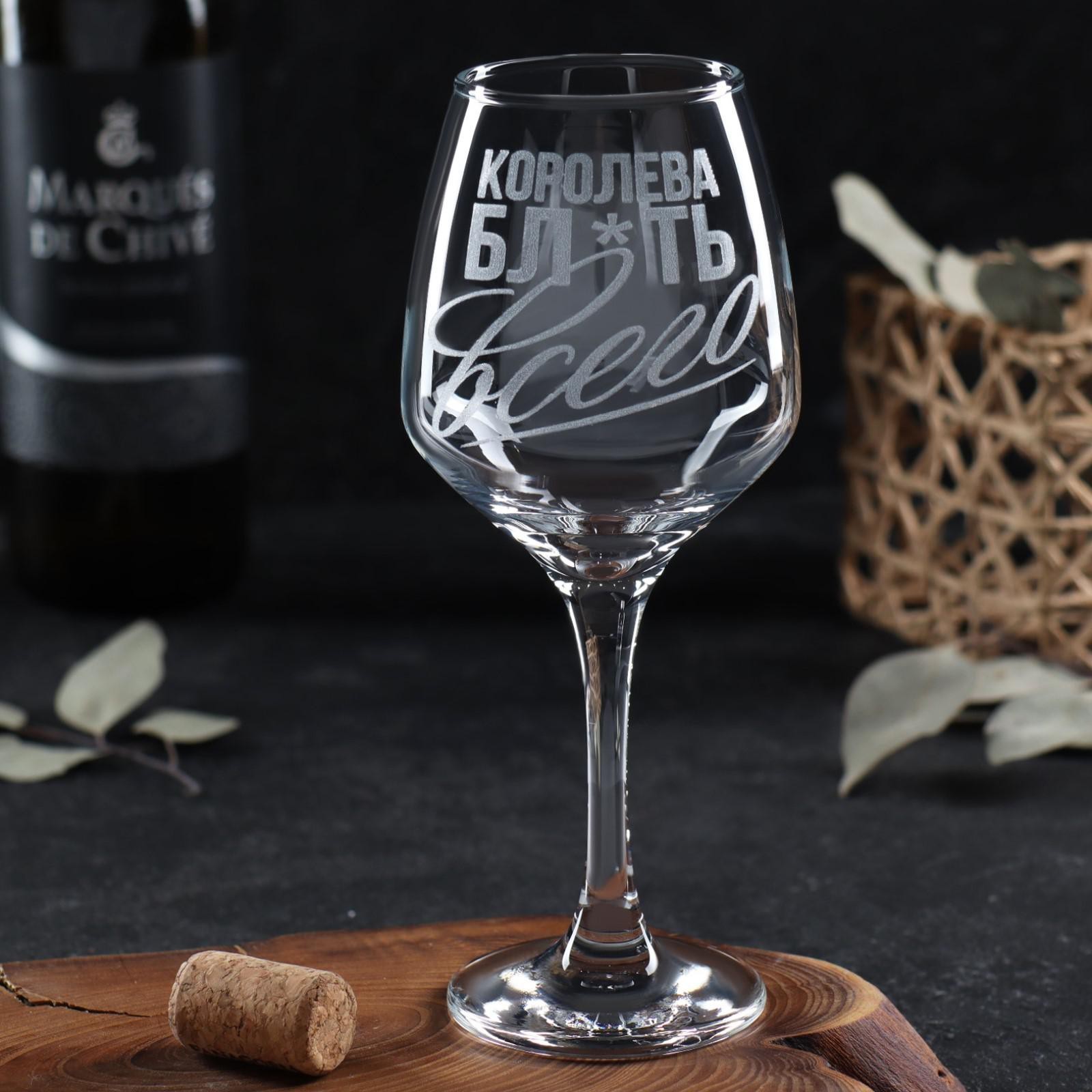 Бокал для вина с надписью "Королева всего" гравировка, 350 мл