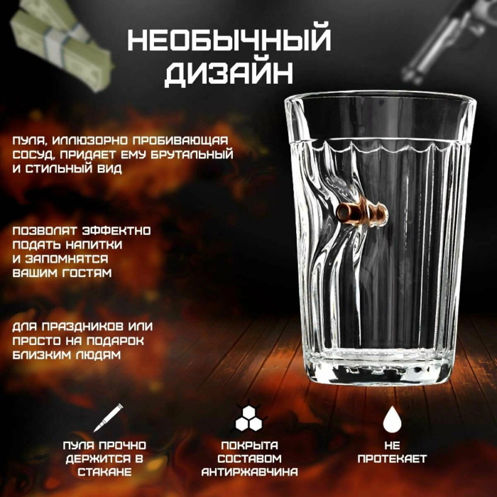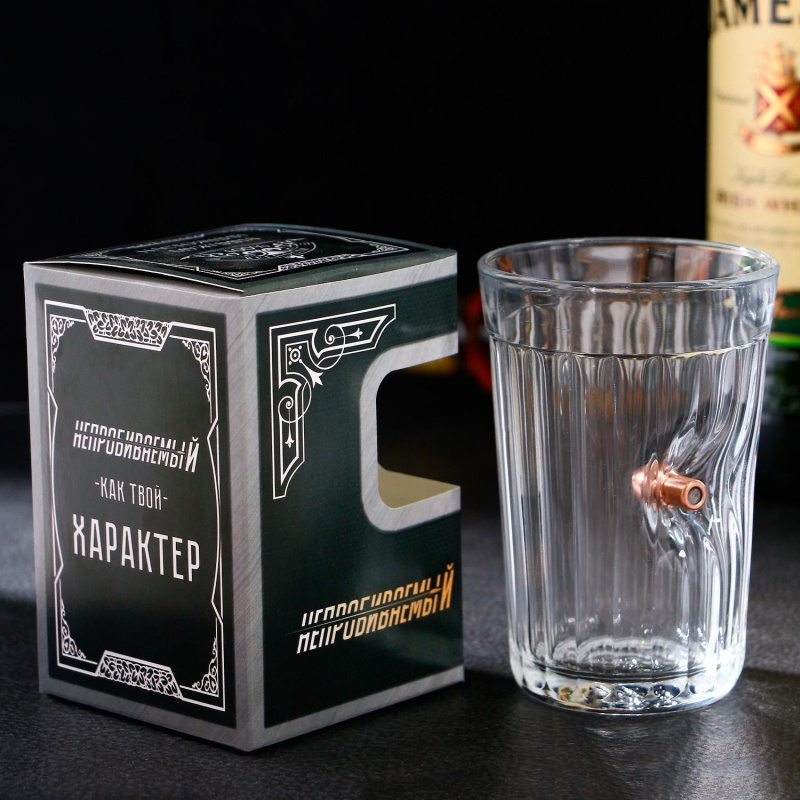 Стакан граненый с пулей Непробиваемый характер, 250 мл