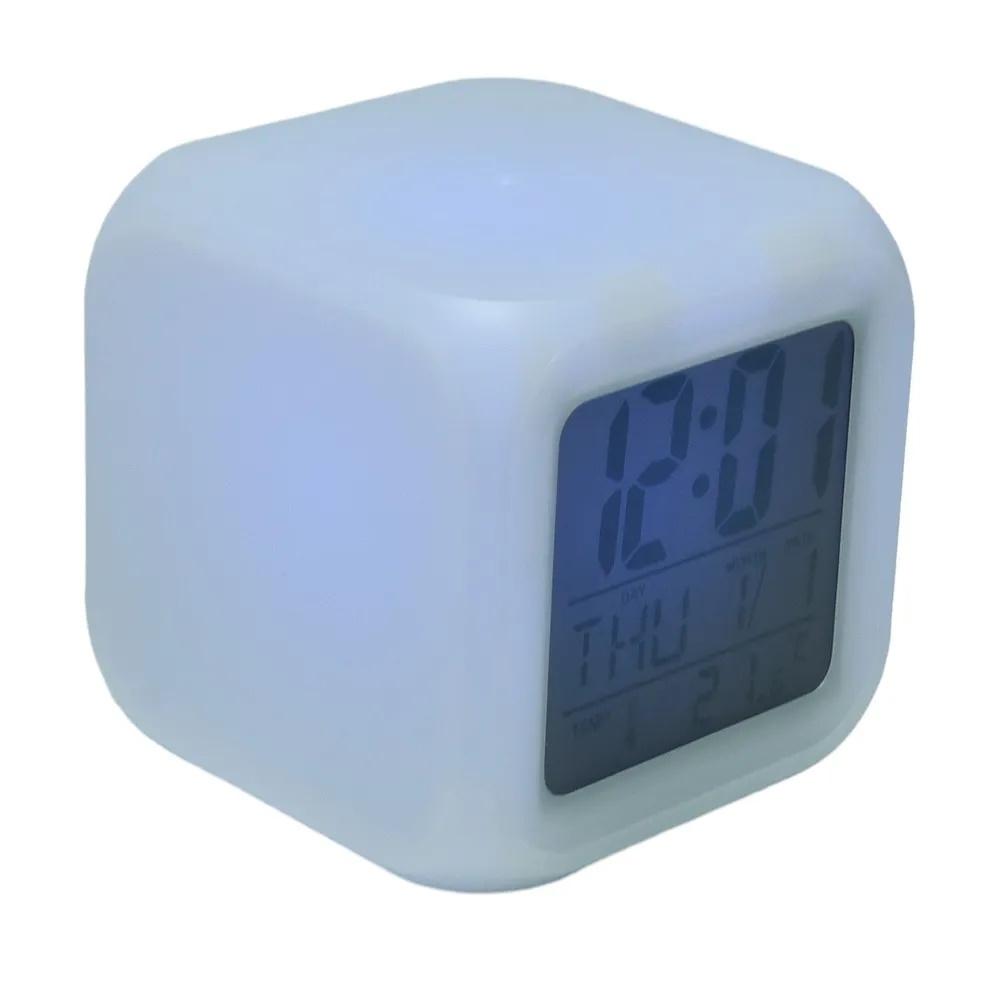 Каждые 5 секунд светящийся куб меняет свой цвет. Часы-будильник, термометр и ночник в одном корпусе! Эффектная штука!