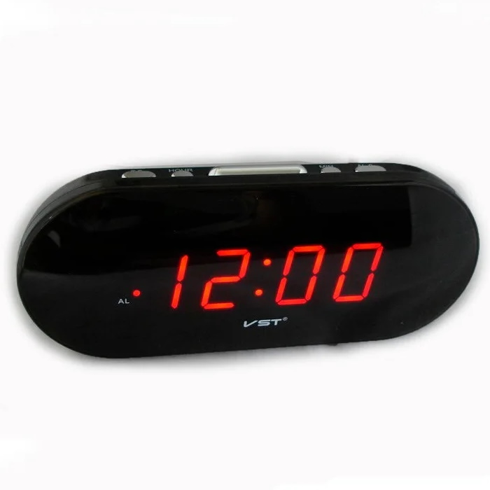 Электронные часы VST-715 - настольные электронные часы имеют приятную овальную форму, дисплей с яркой красной светодиодной подсветкой, а также, обладают встроенным будильником с функцией "SNOOZE" "сони". Когда звучит будильник Вы нажимаете кнопку "SNOOZE", будильник входит в режим сна. Сигнал будильника прозвучит снова через 8 минут.