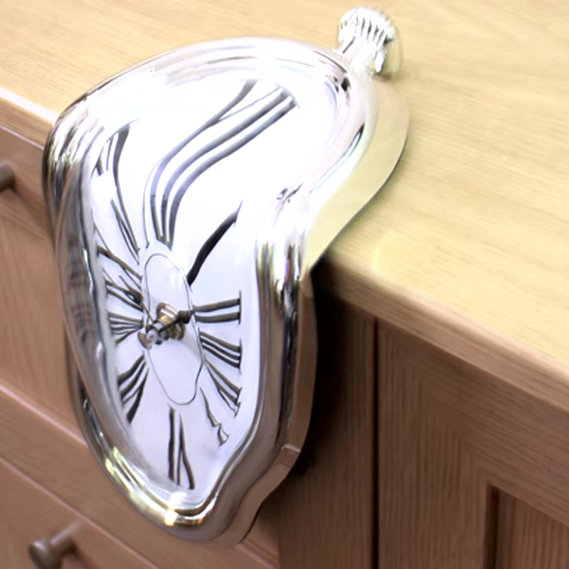 Уникальные стекающие часы по достоинству оценят любители оригинальных вещей. Они как будто сошли с картины Сальвадора Дали и переместились к нам в комнату, всем своим видом показывая, что время «утекает» от нас. Имея корпуса разных цветов, эти часы легко и органично впишутся в интерьер любой комнаты. И подчеркнут утонченный и элегантный вкус их хозяина.