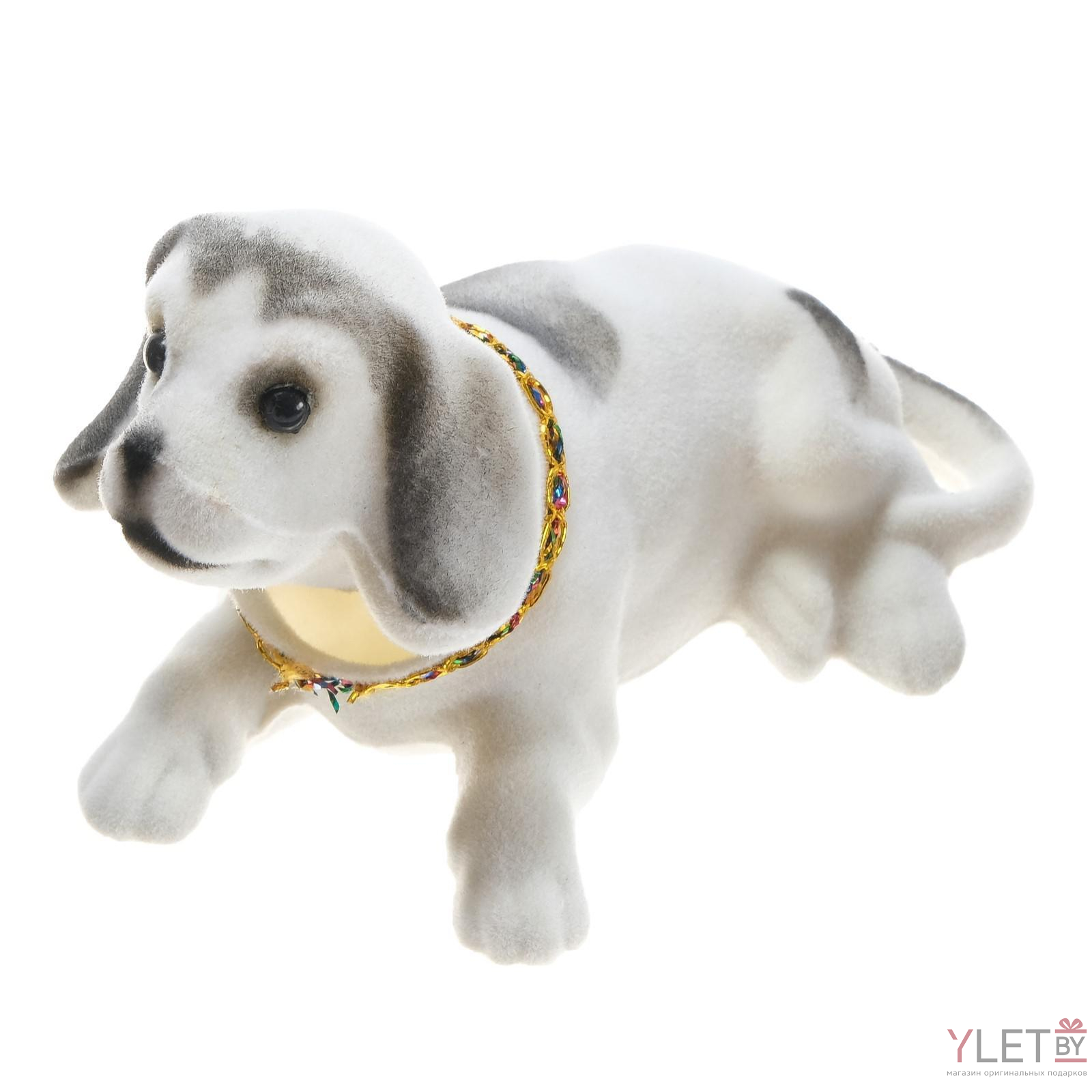 Собака на панель авто, качающая головой, белый окрас, 16 х 13 х 8,5