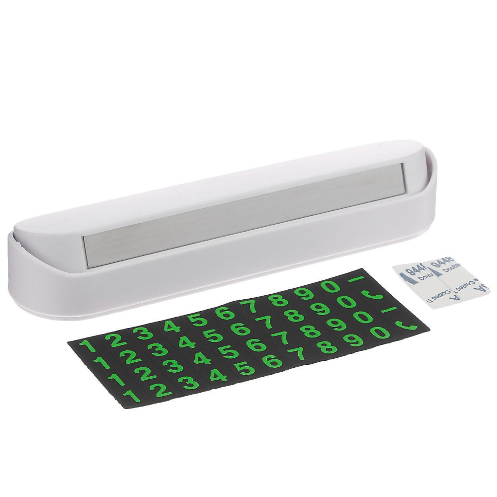 Парковочная табличка с номером телефона имеет подвижную конструкцию, что позволяет скрыть номер телефона легким движением одной руки. Набор имеет трафарет с цифрами от 0 до 9- это позволяет быстрого и легкого составить или изменить номера телефона, в случае если автомобилем пользуется не один водитель. В нижней части корпуса находится клейкая лента, которая позволяет надежно прикрепить табличку в нужном месте автомобиля. Современный дизайн таблички не будет выделяться из интерьера салона вашего автомобиля. Парковочная табличка залог спокойствия водителя.