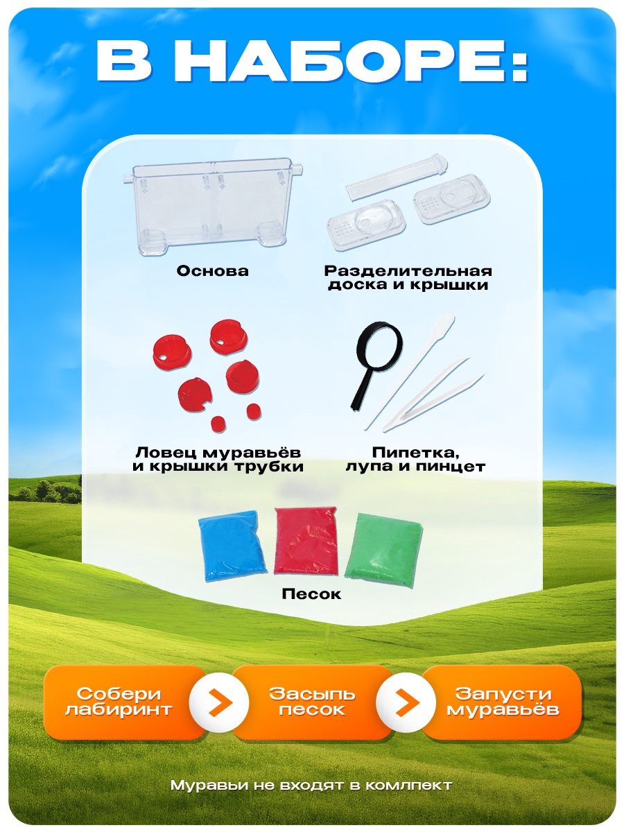 Обратите внимание, что муравьи не входят в комплект, что позволяет вам самостоятельно выбрать и завести их!