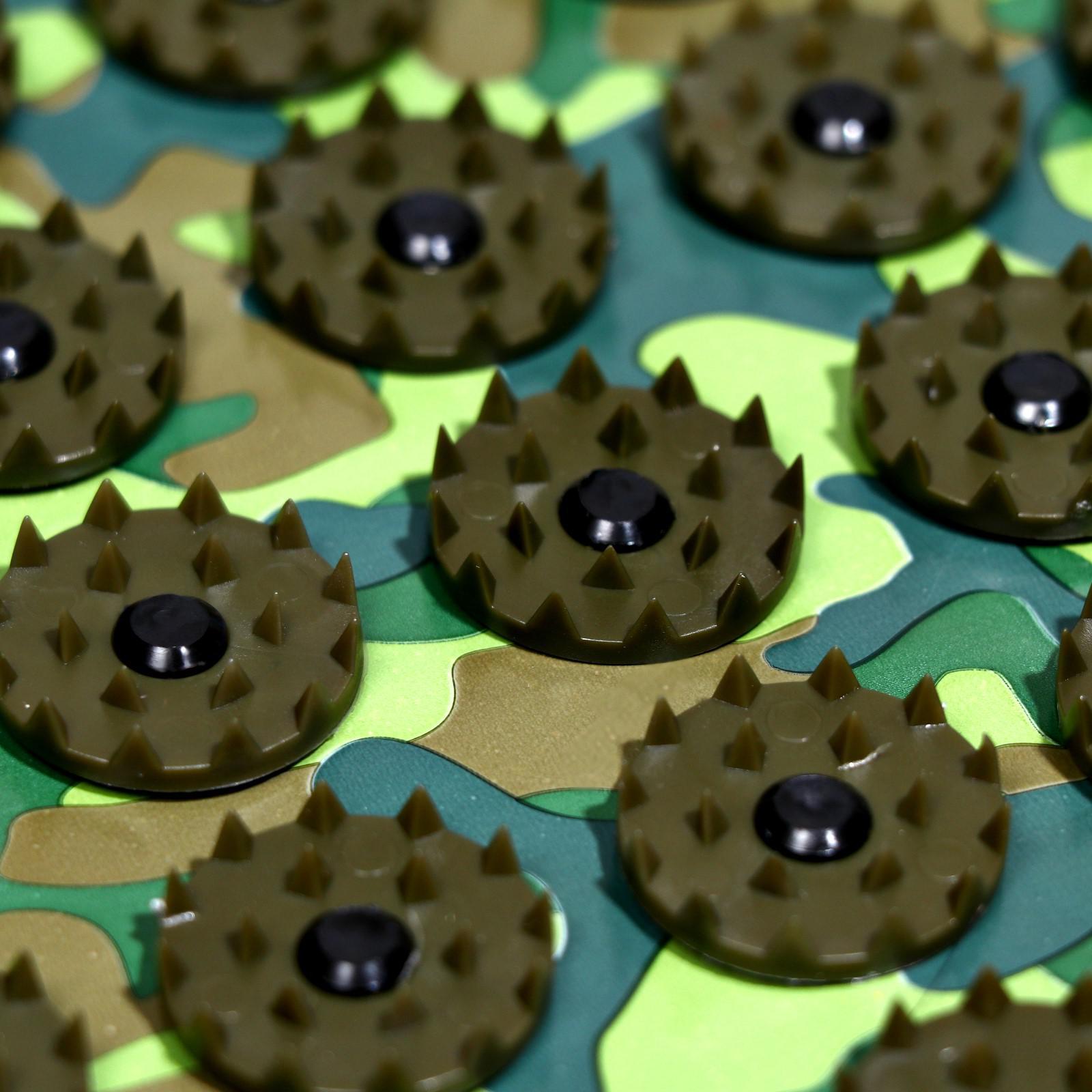 - Круглые детали с иглами изготавливаются из безопасной пластмассы и надежно фиксируются с помощью специальных кнопок.