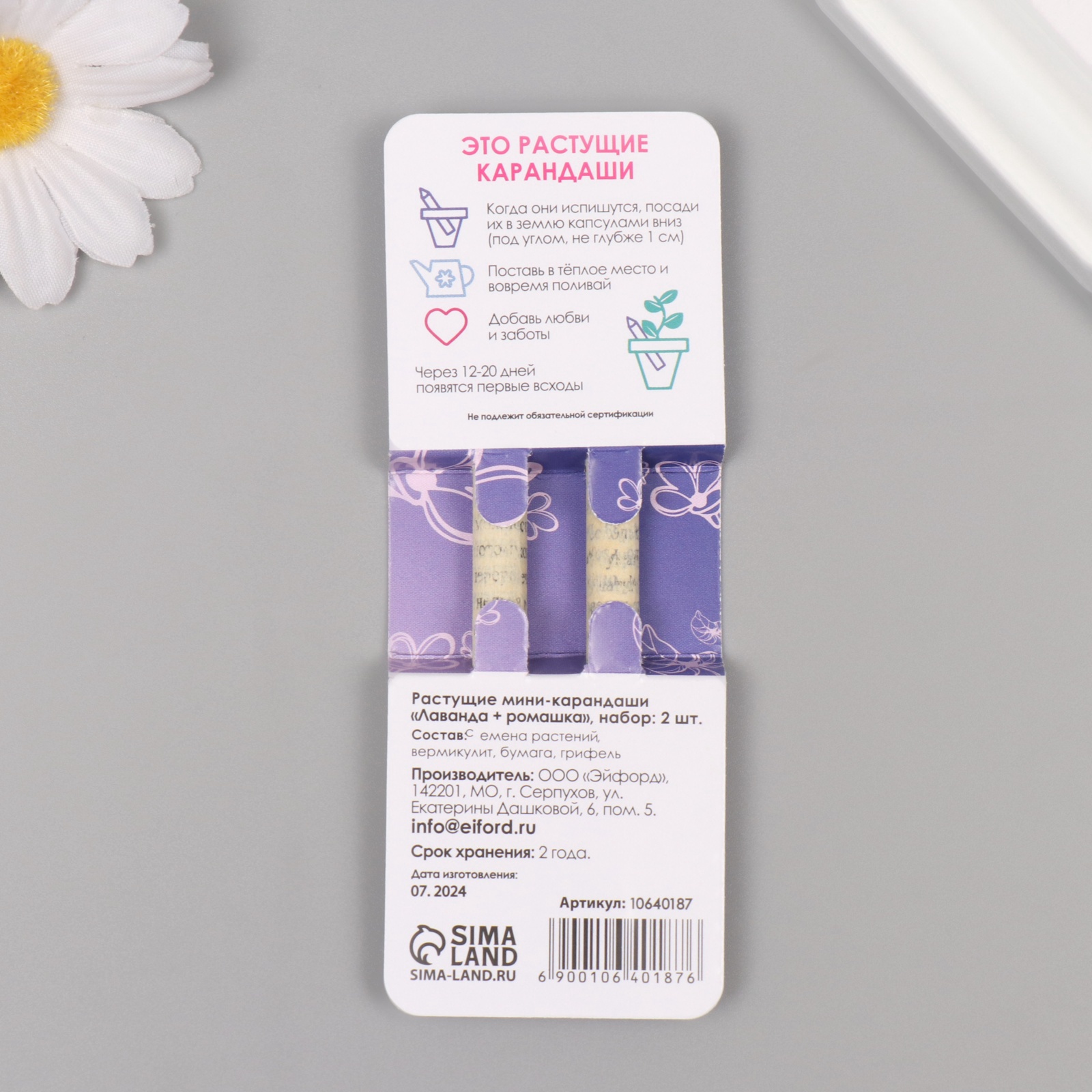 Растущие карандаши подарочные «Лаванда + Ромашка» 2 шт.