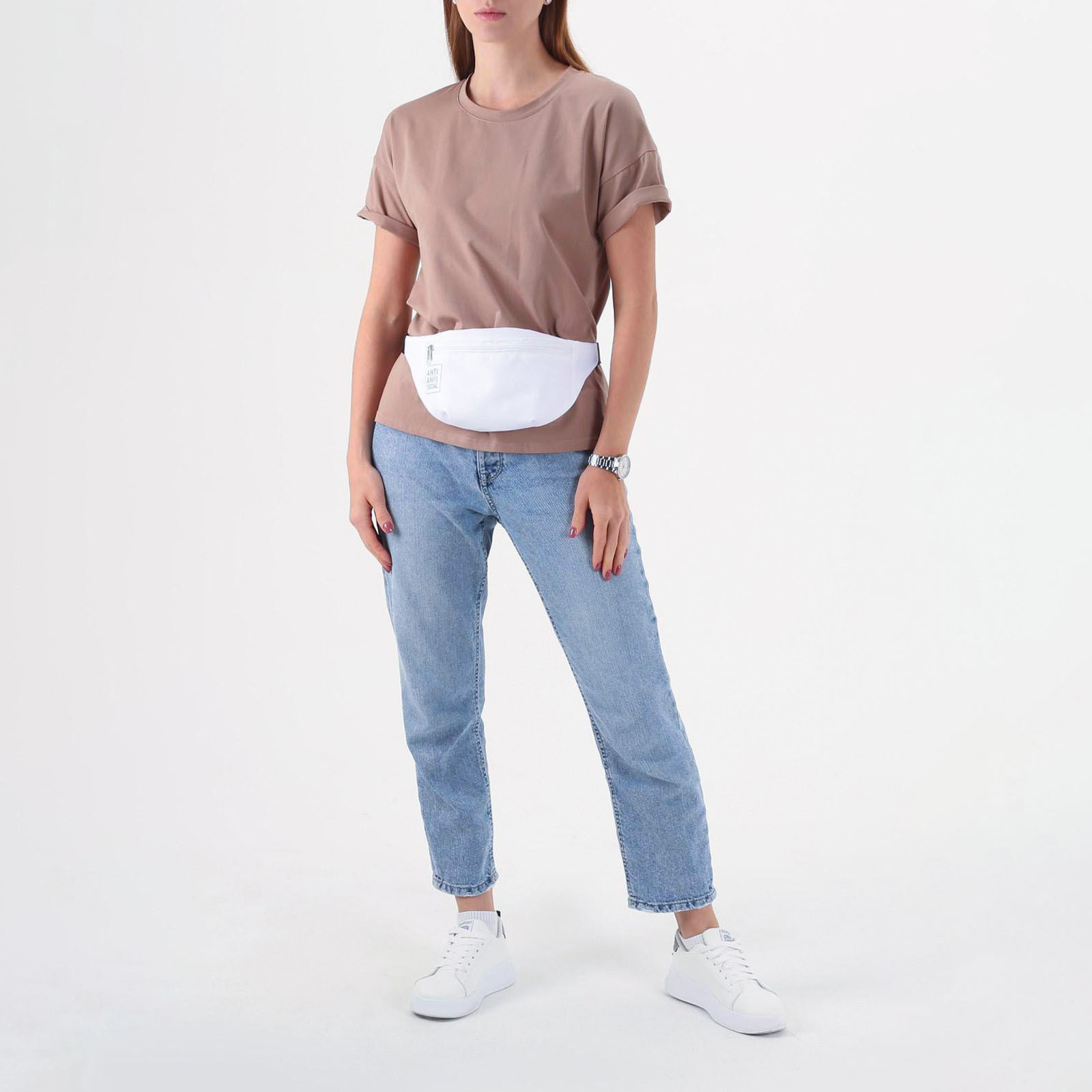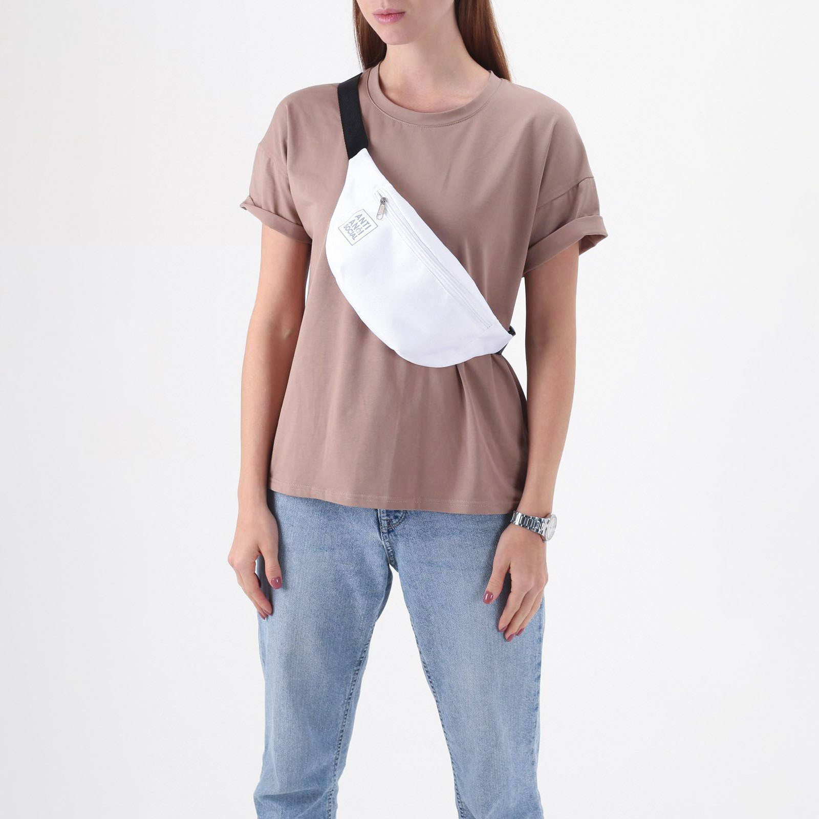 Сумка выполнена из качественного текстиля в ярком белом цвете, что придаёт ей современный и свежий вид. Мягкий каркас обеспечивает комфорт при ношении и легкость использования, что делает её идеальной для повседневного использования, прогулок и активного отдыха.