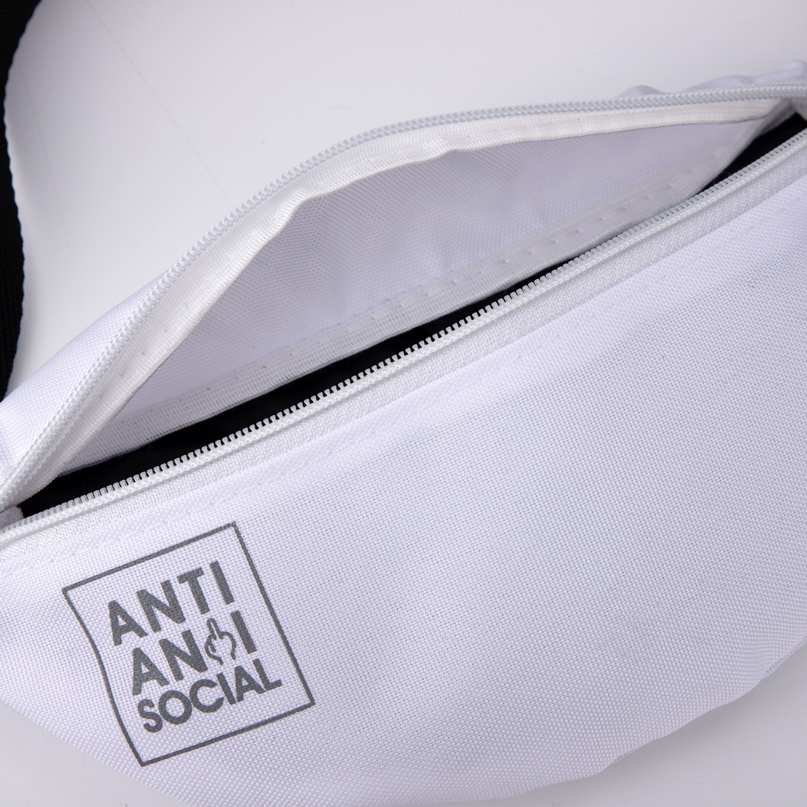 Сумка поясная "Anti social" на молнии, 32* 8*15 см, белый