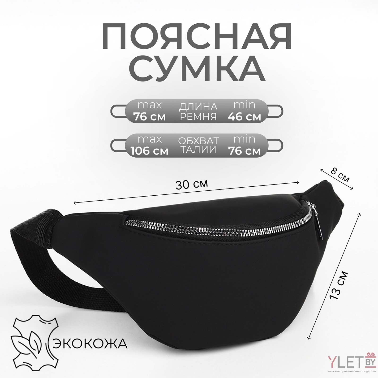 Сумка поясная "Классик" на молнии, 30*8*13 см, иск. кожа, черный