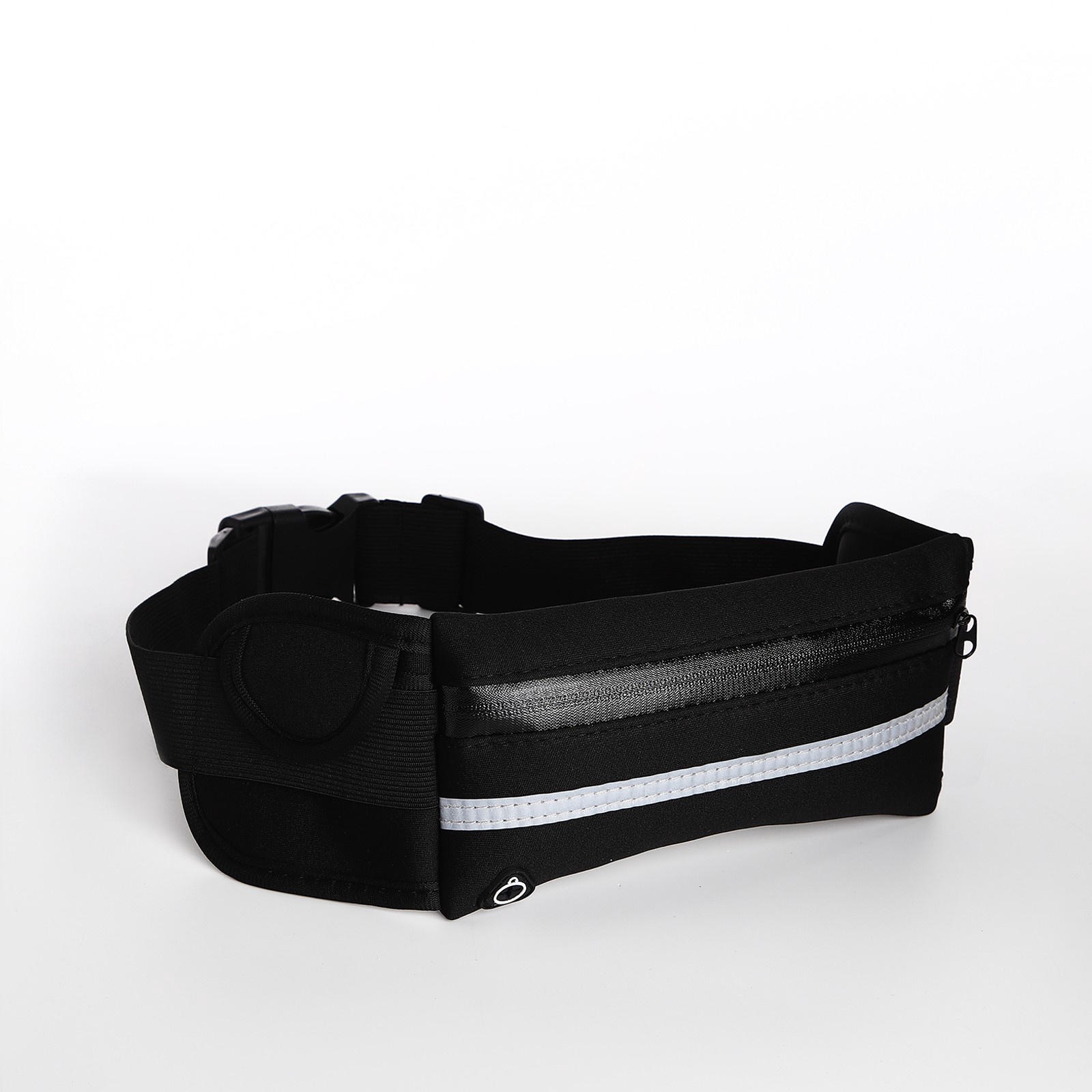 Сумка поясная "Run" на молнии, 24*1*10 см, светоотражающие элементы, черный