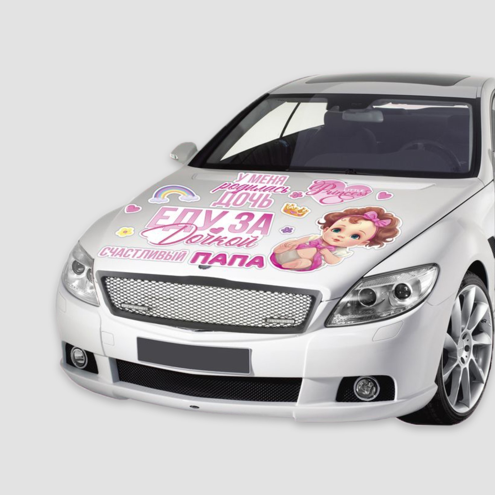 Отметьте рождение вашей дочери с набором магнитов на авто «Еду за дочкой» и дайте всем вокруг узнать о вашем счастье!