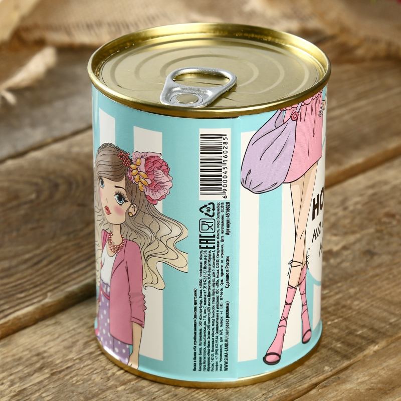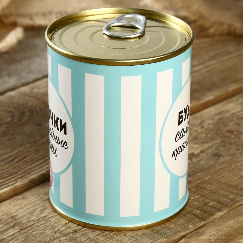 Поверьте Ваше поздравление в виде консервной банки будет поднимать настроение как приятный презент в знак внимания!Характеристики: