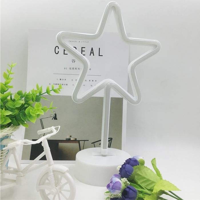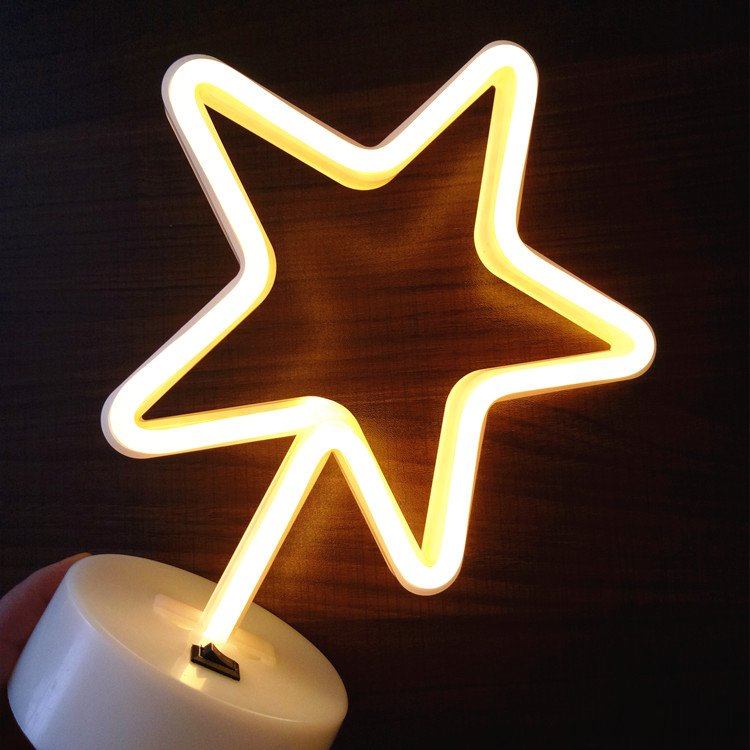 Неоновый светильник Звезда– привлекательная лампа для освещения и украшения интерьера. Пора внести креатив в освещение и наполнить маленькие комнаты и уютные уголки нежнейшим неоновым светом, исходящим от лампы, изогнутой в виде очаровательной звезды.Устойчивая платформа позволяет размещать осветительный прибор даже там, где нет постоянного источника тока, потому что светильник работает и без использования сети.Работает от: USB и батареек (3*АА- не комплектуются).Материал: пластик.