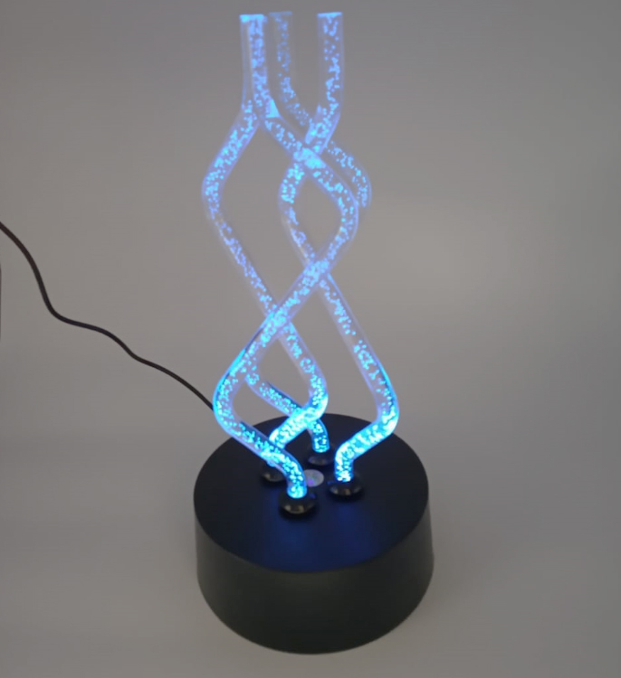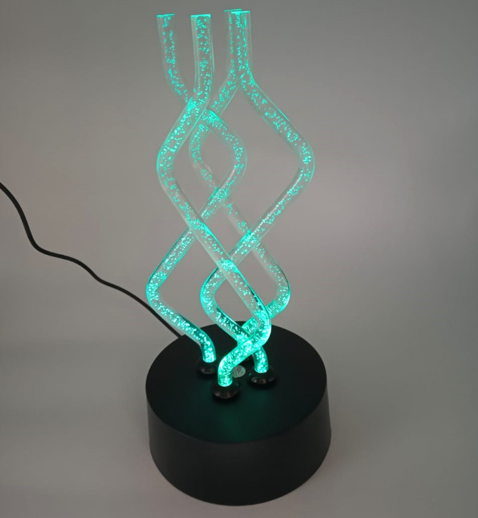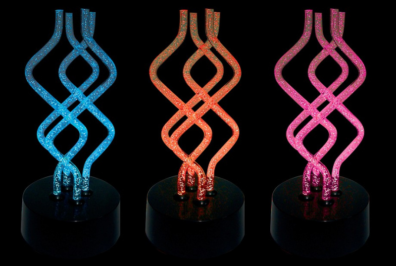 Эта удивительная лампа состоит из четырёх оригинальных элементов с необычной формой, которые, вращаясь, создают уникальную цветовую палитру, не касаясь друг друга.