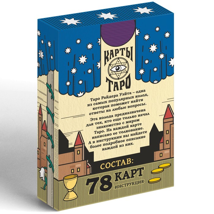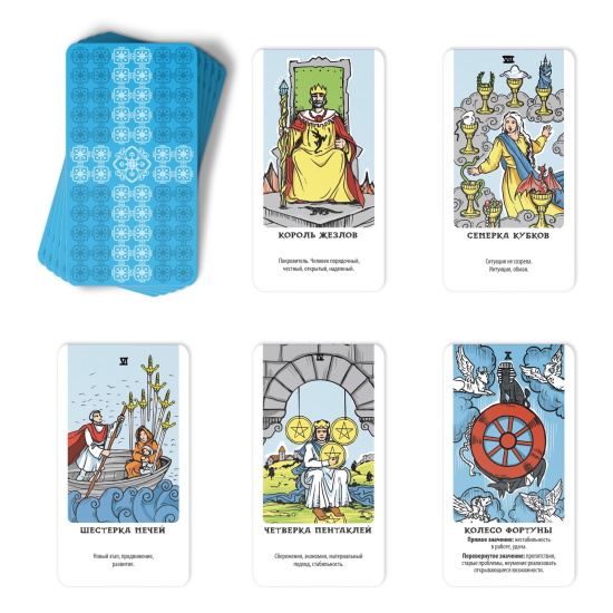 Вы только начинаете знакомство с загадочным миром Таро? Тогда эта колода подойдёт вам. В инструкции вы найдёте подробное описание каждой карты, а также её значение в прямом и перевёрнутом положении. Кроме этого, в инструкции находится подробное описание, значение и особенности основных раскладов: «Три карты», «Подкова», «Обретение любви». К каждому раскладу прилагается изображение.