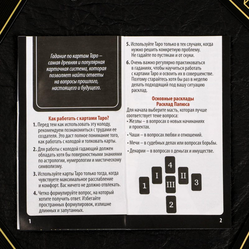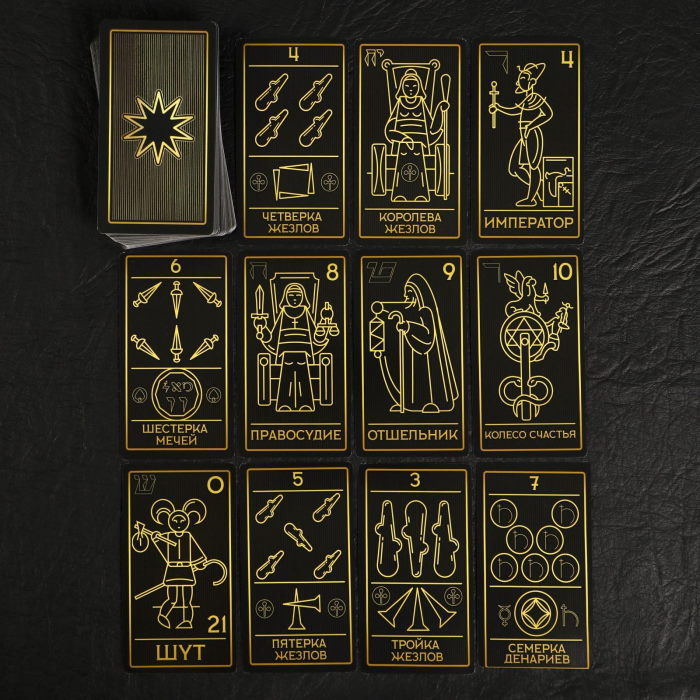 Суть этих принципов в том, что обширные и сложные знания передавались ученикам в синтезе, представляя единую полную картину мира. Позднее, опасаясь, что их знания будут утрачены или попадут в руки профанов и подвергнутся осквернению, жрецы зашифровали свое учение в виде серии изображений, которая использовала тот же принцип синтеза, представляя все тайные знания в виде системы символических картин.Комплектация