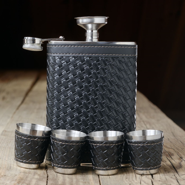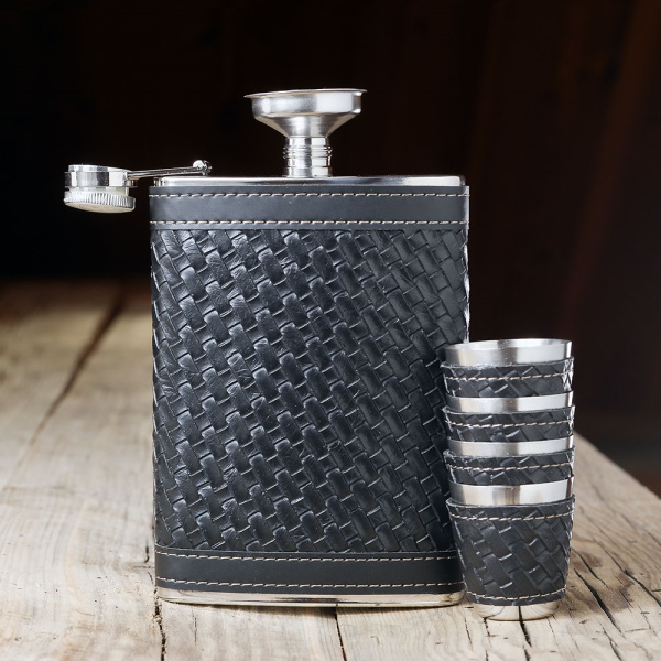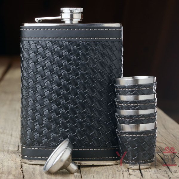 - фляжка из пищевой нержавейки, обтянутая искусственной кожей