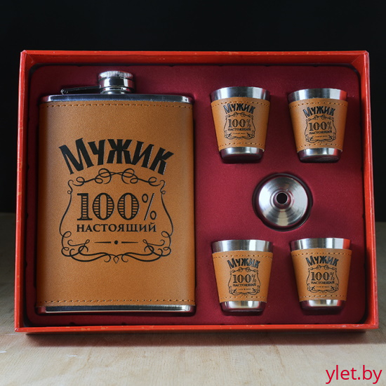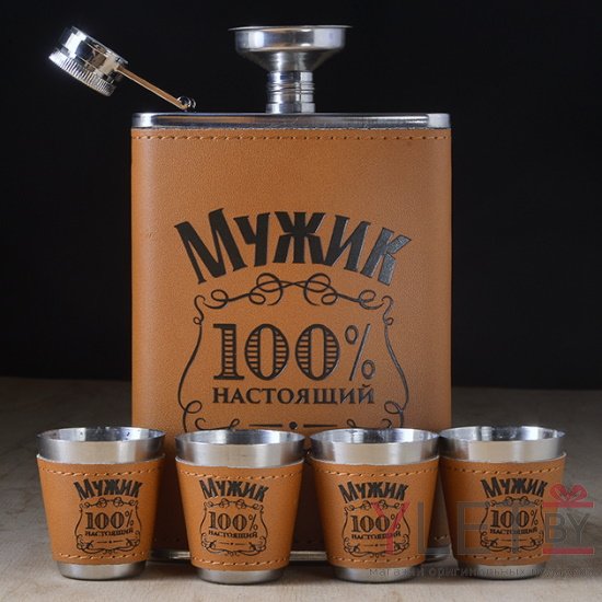 Набор фляжка и стопки Мужик 100% Настоящий