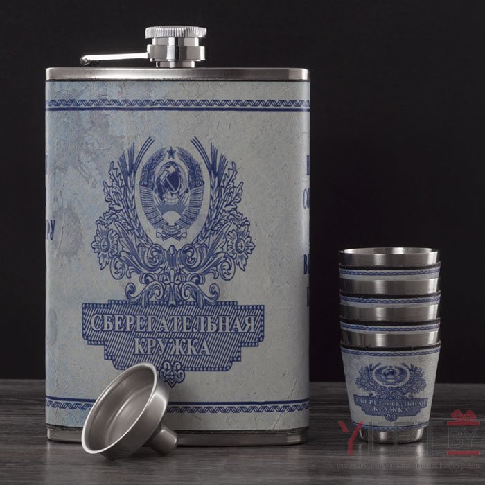 - фляжка из пищевой нержавейки, обтянутая искусственной кожей