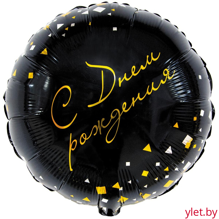 Шар (18''/46 см) Круг, с Днем рождения, конфетти Party черный