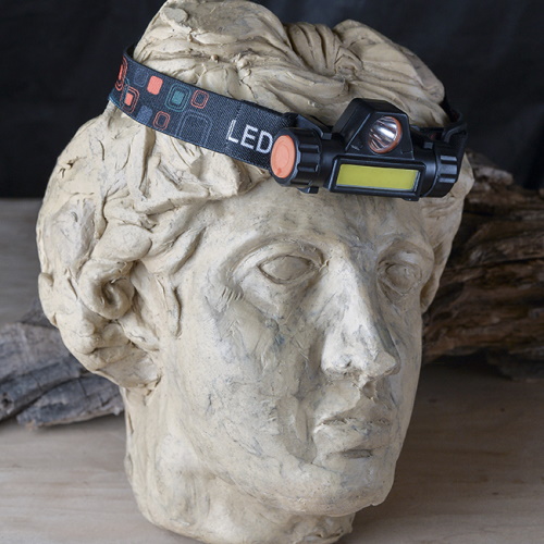 • полезен в хозяйстве, когда нужно спуститься в погреб или подвал, где нет света.Налобный фонарь имеет один центральный диод и один мощный COB кристалл.