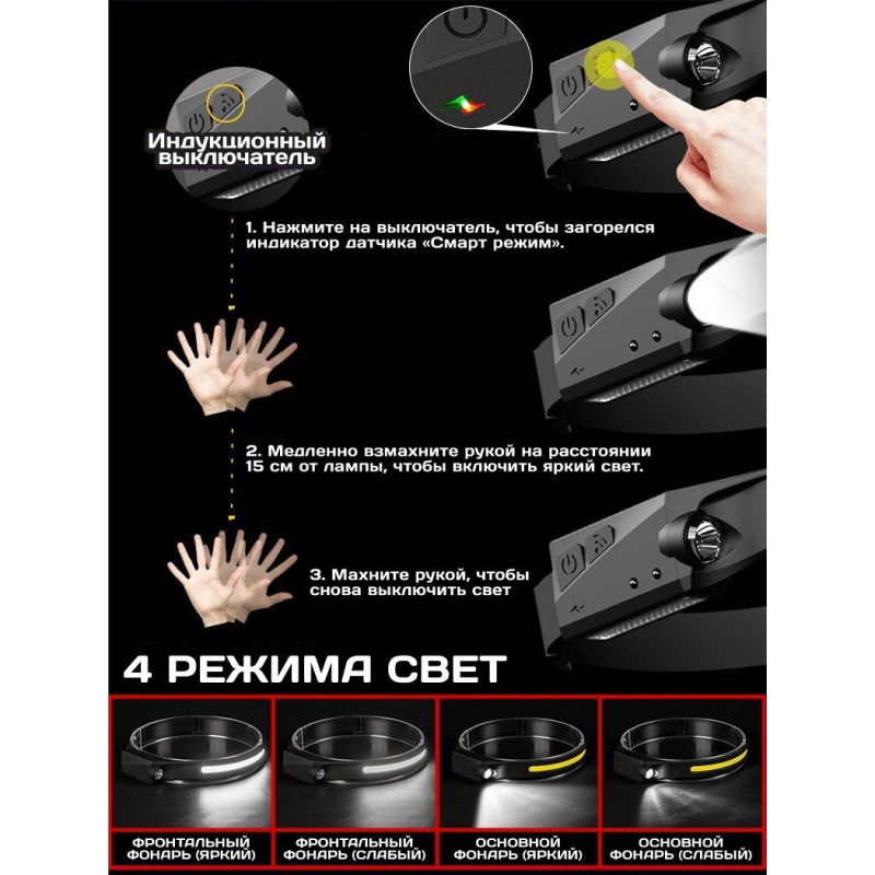 Гибкий налобный фонарь-лента с боковым фонариком работает на встроенном аккумуляторе. Налобный фонарь-лента предназначен для бытового использования.