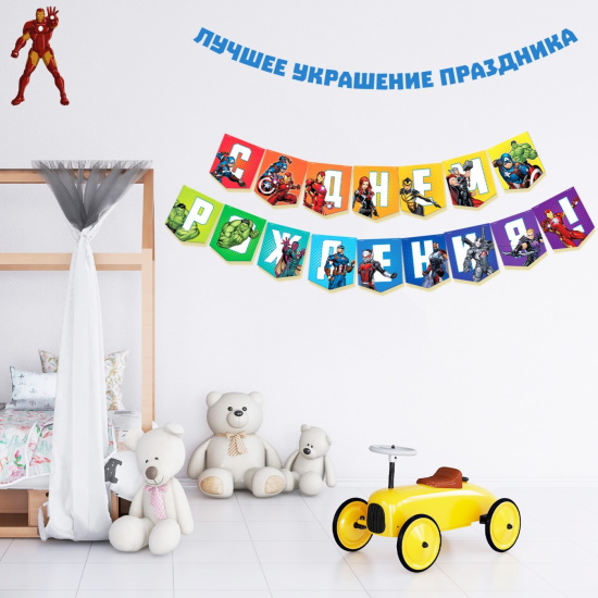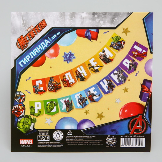 Гирлянда на ленте С Днем Рождения, Мстители, длина 216 см