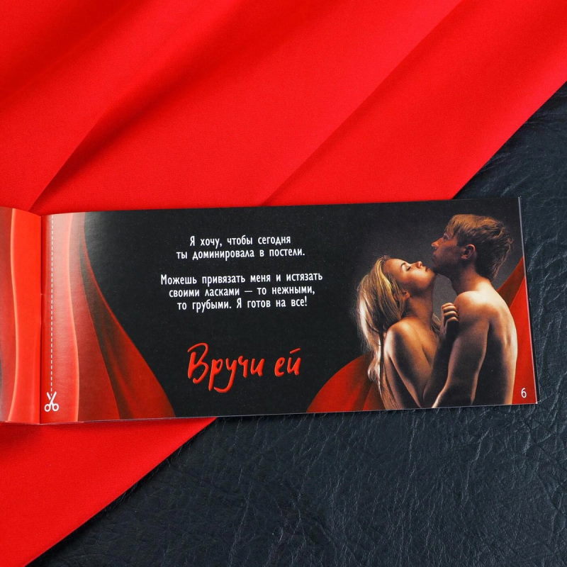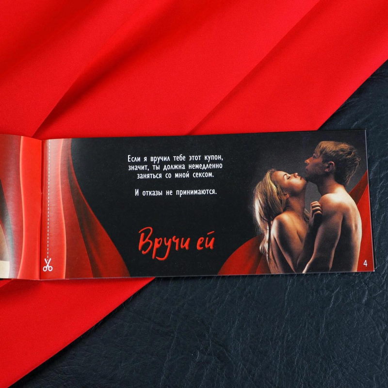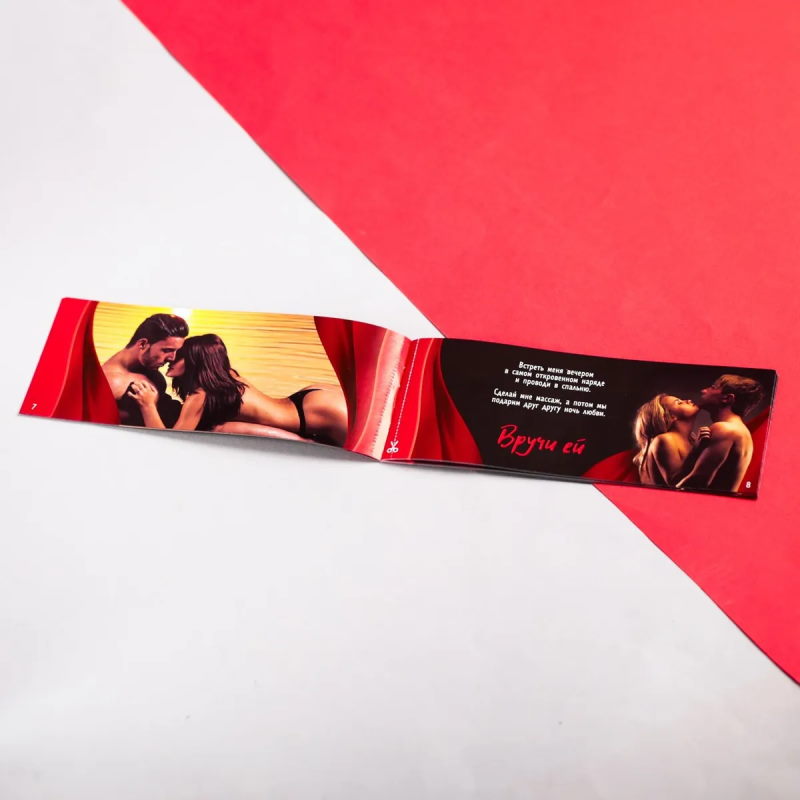 Каждый купон этого набора — откровенная сексуальная фантазия. Правила просты: отрывайте понравившийся листочек и вручайте его своему партнёру. Теперь все ваши задумки воплотятся в реальность!