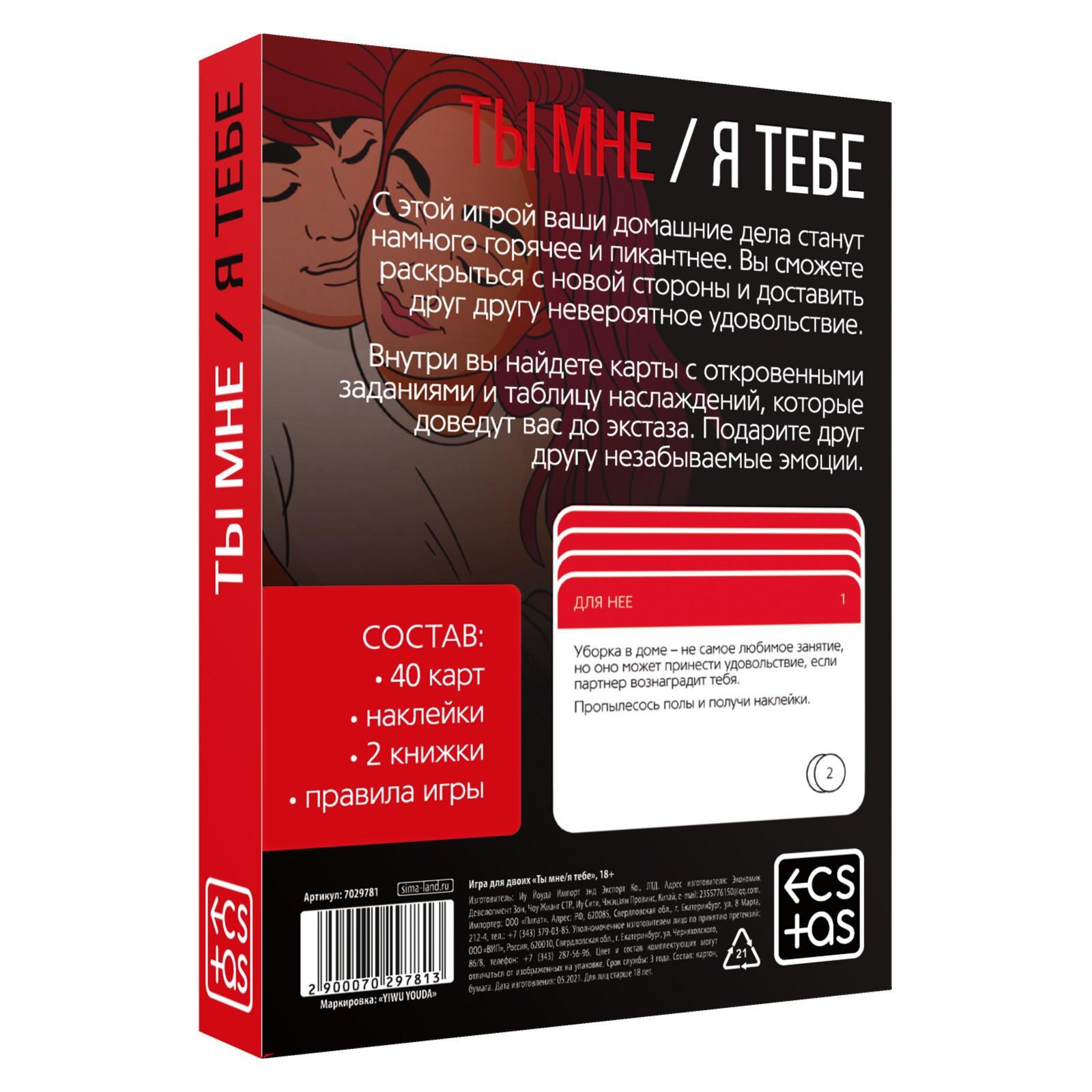 Игра для двоих «Ты мне/я тебе», 3 в 1 (40 карт, наклейки, 2 книжки), 18+
