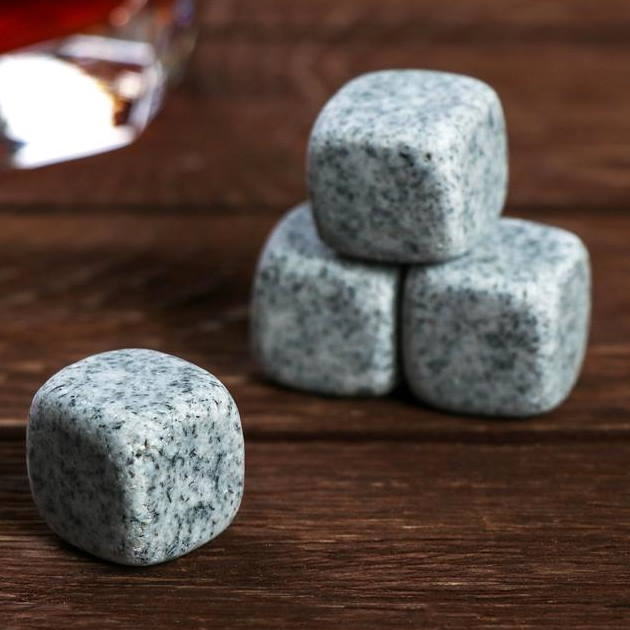 Раньше в виски было принято добавлять кубики льда, так как в охлаждённом виде этот напиток вкуснее. Но при таянии лёд разбавляет виски водой, ухудшая его вкусовые качества. Эта проблема будет решена, если заменить лёд специальными каменными кубиками. Как работает камень для виски? Идеально отполированные камни из пищевого стеатита не имеют ни запаха, ни вкуса, и не вступают в химическое взаимодействие с напитком. Перед употреблением кубики для виски на 1-2 часа помещают в морозильную камеру. Затем их кладут в стакан с виски, и они медленно отдают свой холод напитку. Для достижения оптимальной температуры 16-18 градусов традиционно кладётся по 3-4 кубика на стакан, и вкус виски становится мягким и насыщенным.