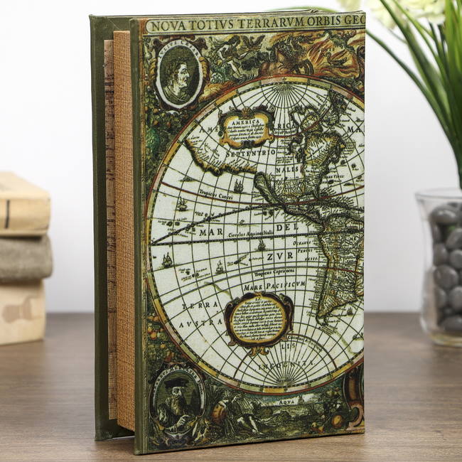 Сейф книга дерево Карта первооткрывателей, 21х13х5 см