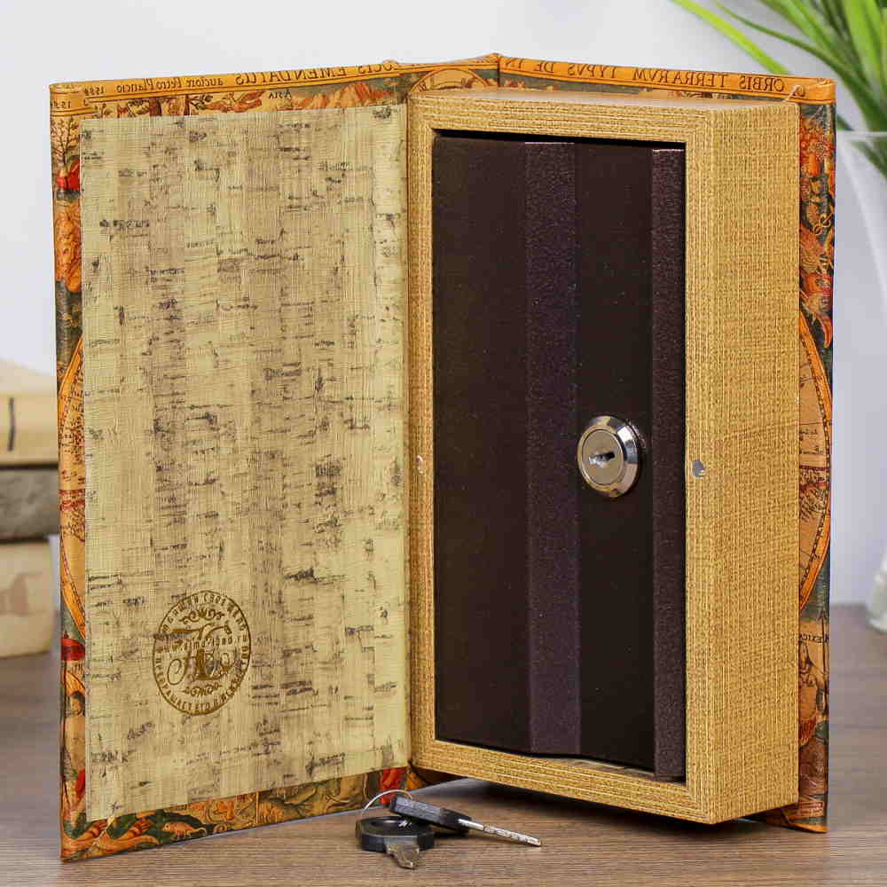 Сейф книга кожа Старинные карты мира 17х11х5 см