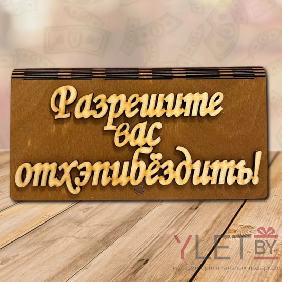 Деревянный конверт купюрница для денег Разрешите вас отхэпибездить