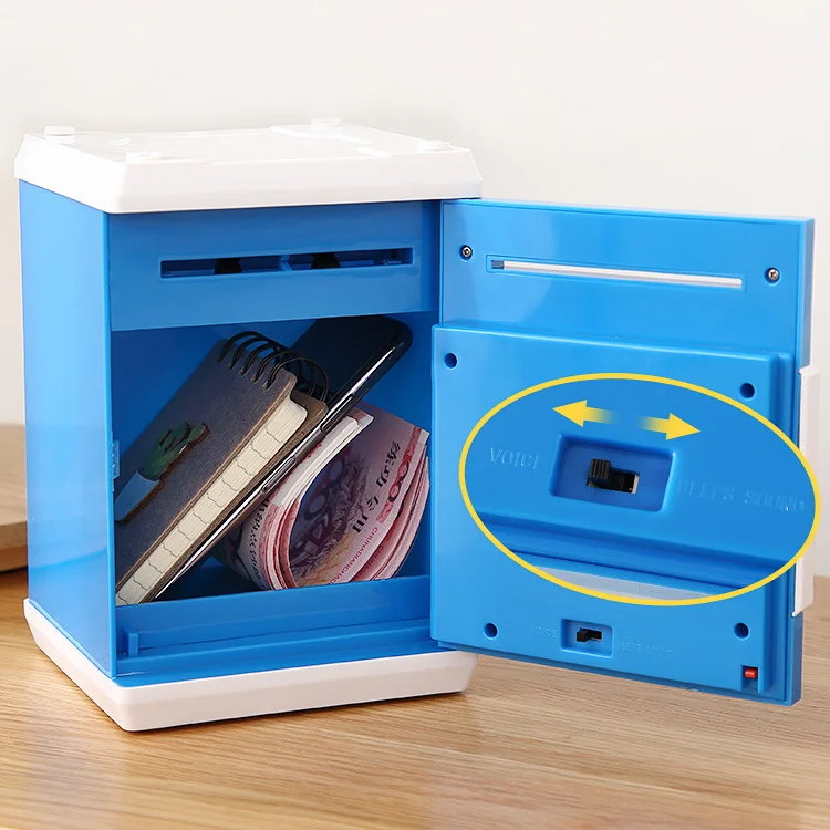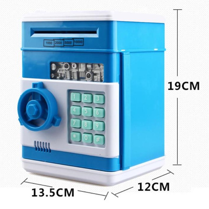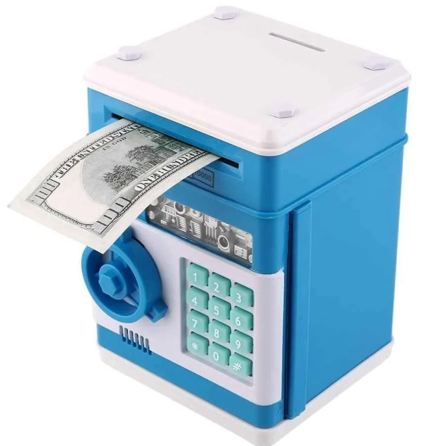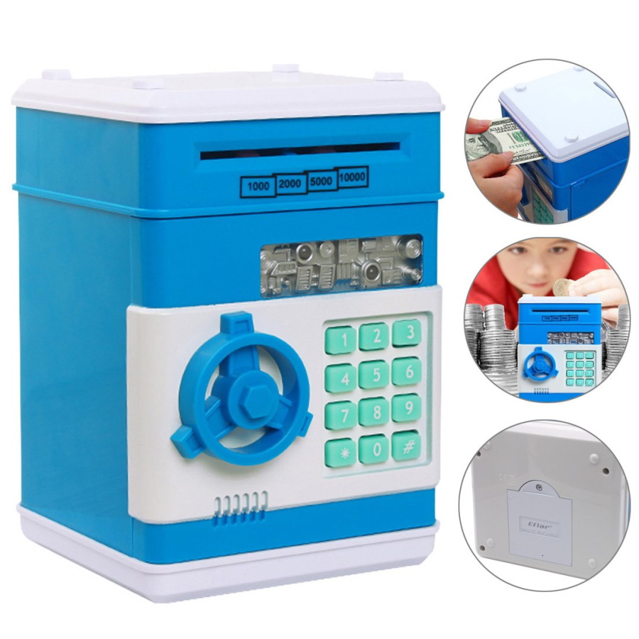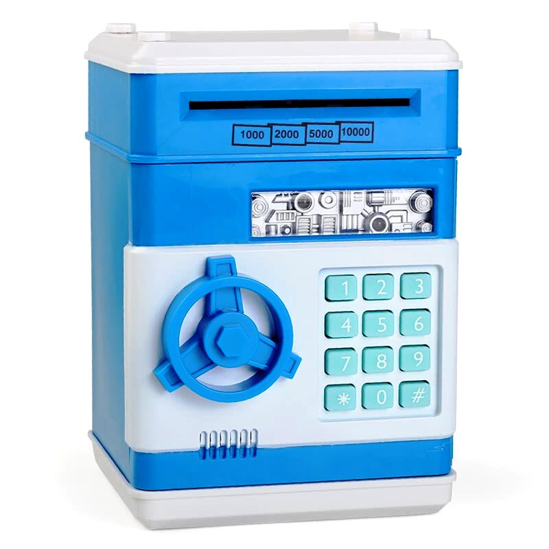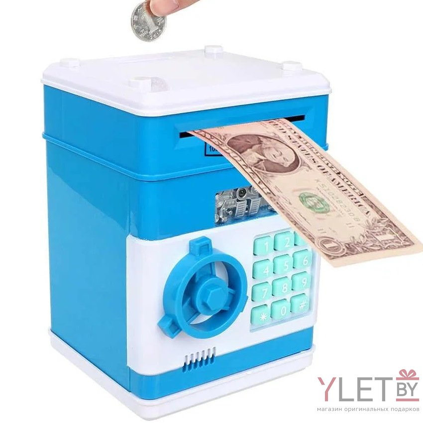 Компактная и стильная копилка «Сейф» станет домашним хранилищем денежных сбережений. Корпус выполнен из прочного пластика. Устройство предназначено для бумажных купюр и монет, которые пропускаются через специальное отверстие. Особенность копилки в том, что владелец можете может установить шифр на замок сейфа. Секретная комбинация вводится на цифровом табло.