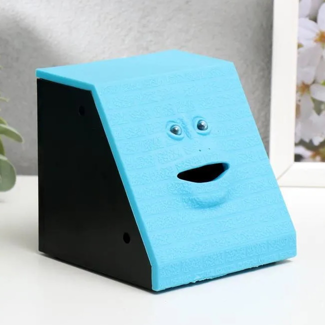 Это оригинальная сенсорная копилка, которая доставит много удовольствия взрослым и детям. Положите монетку в рот Забавной мордочке , она захватит монетку и начнёт её "пережевывать" и проглатывать с характерными звуками.
