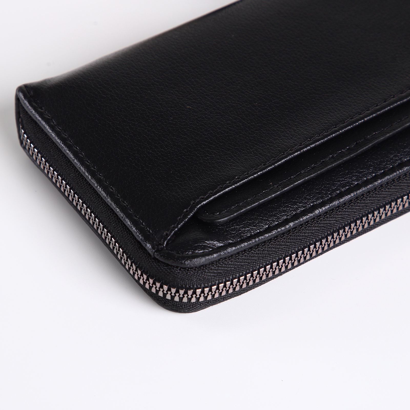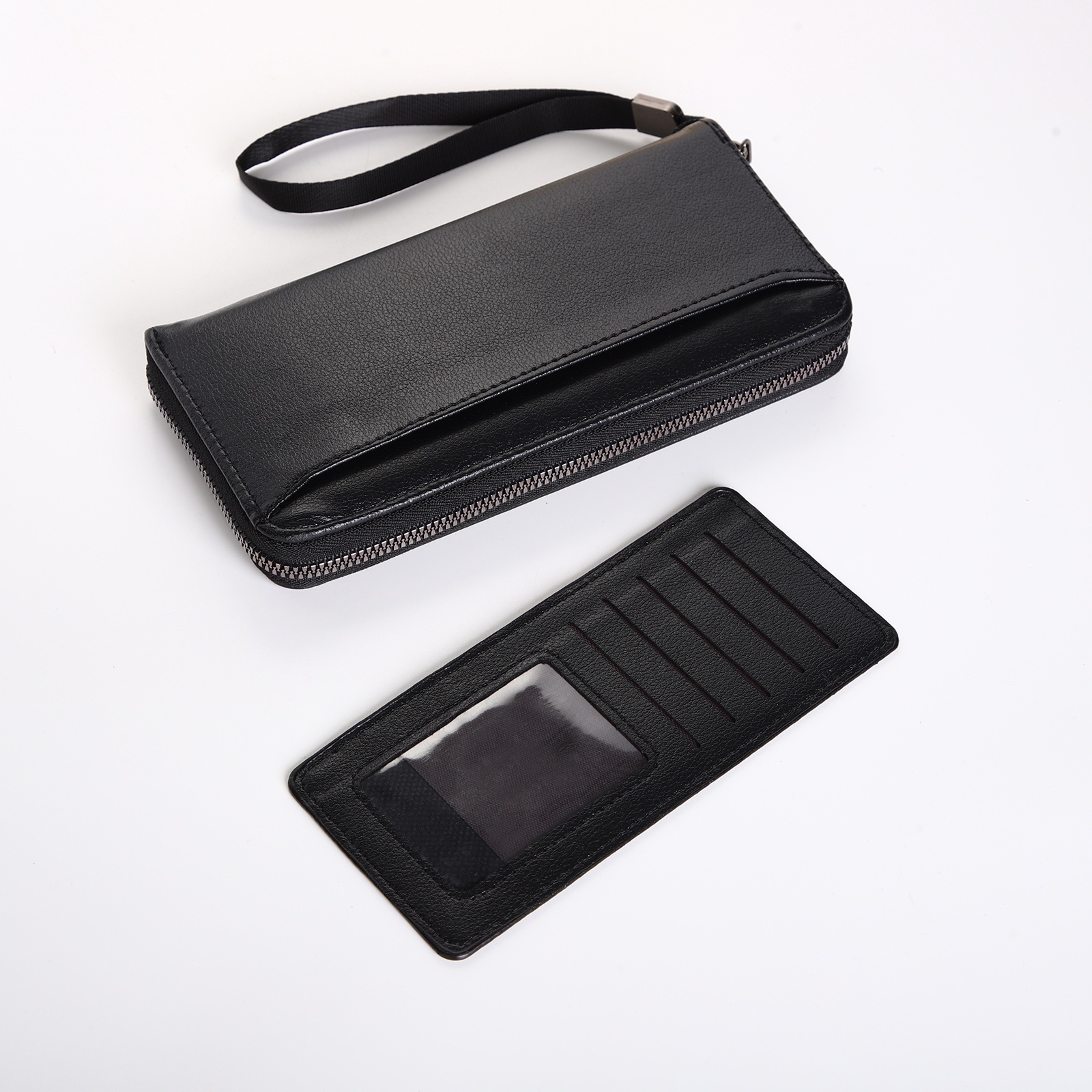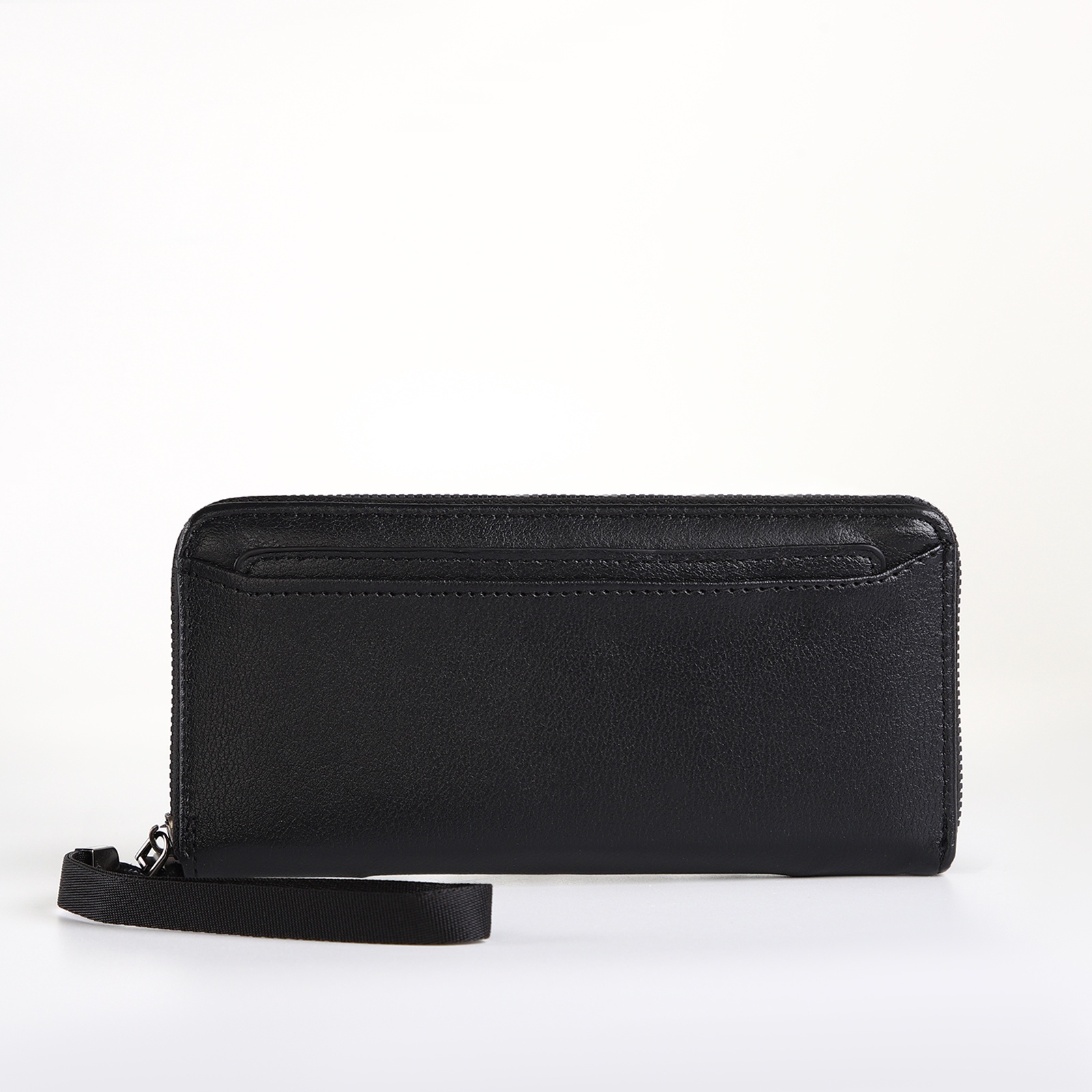 Этот чёрный клатч с молнией создаёт лаконичное решение для повседневных платежей. Единое отделение объединяет банкноты и карты в одном пространстве. Молния по контуру сохраняет содержимое, поддерживая строгий силуэт аксессуара. Универсальный цвет сочетается с разными стилями в мужском гардеробе.
