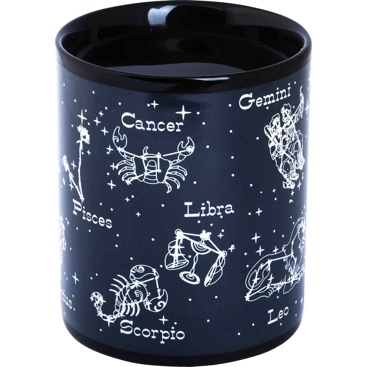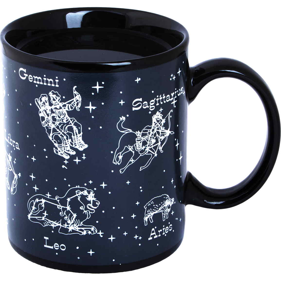 Благодаря специальной термочувствительной краске на основе жидких кристаллов кружка имеет двойное, меняющееся при использовании изображение. Эта удивительная кружка похожа на маленький домашний планетарий. Рисунок на стенках состоит из множества светлых точек-звёздочек, сияющих в ночном небе. Но стоит налить в кружку горячий напиток, и между точками проявятся невидимые доселе нити, превращающие их в знаменитые созвездия.
