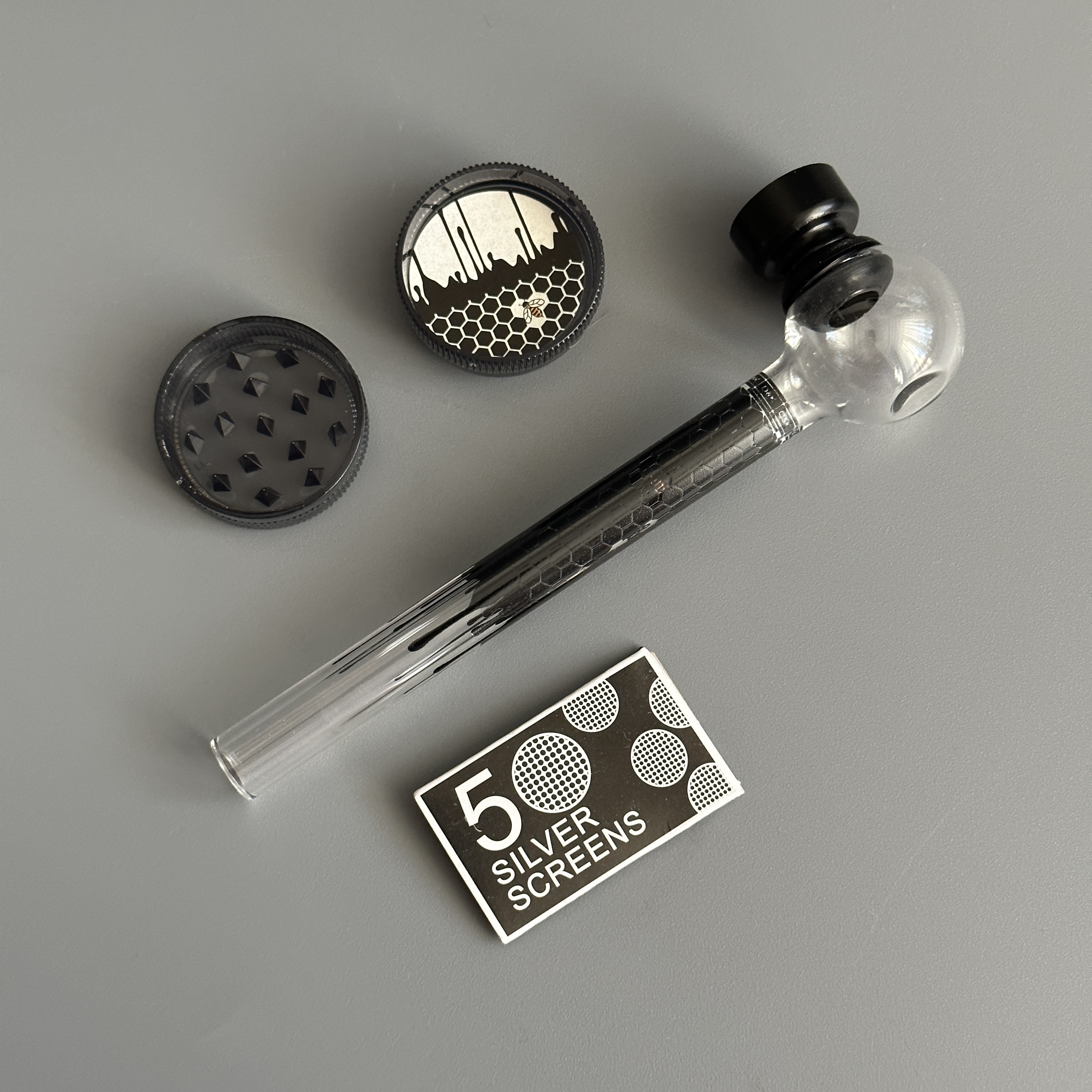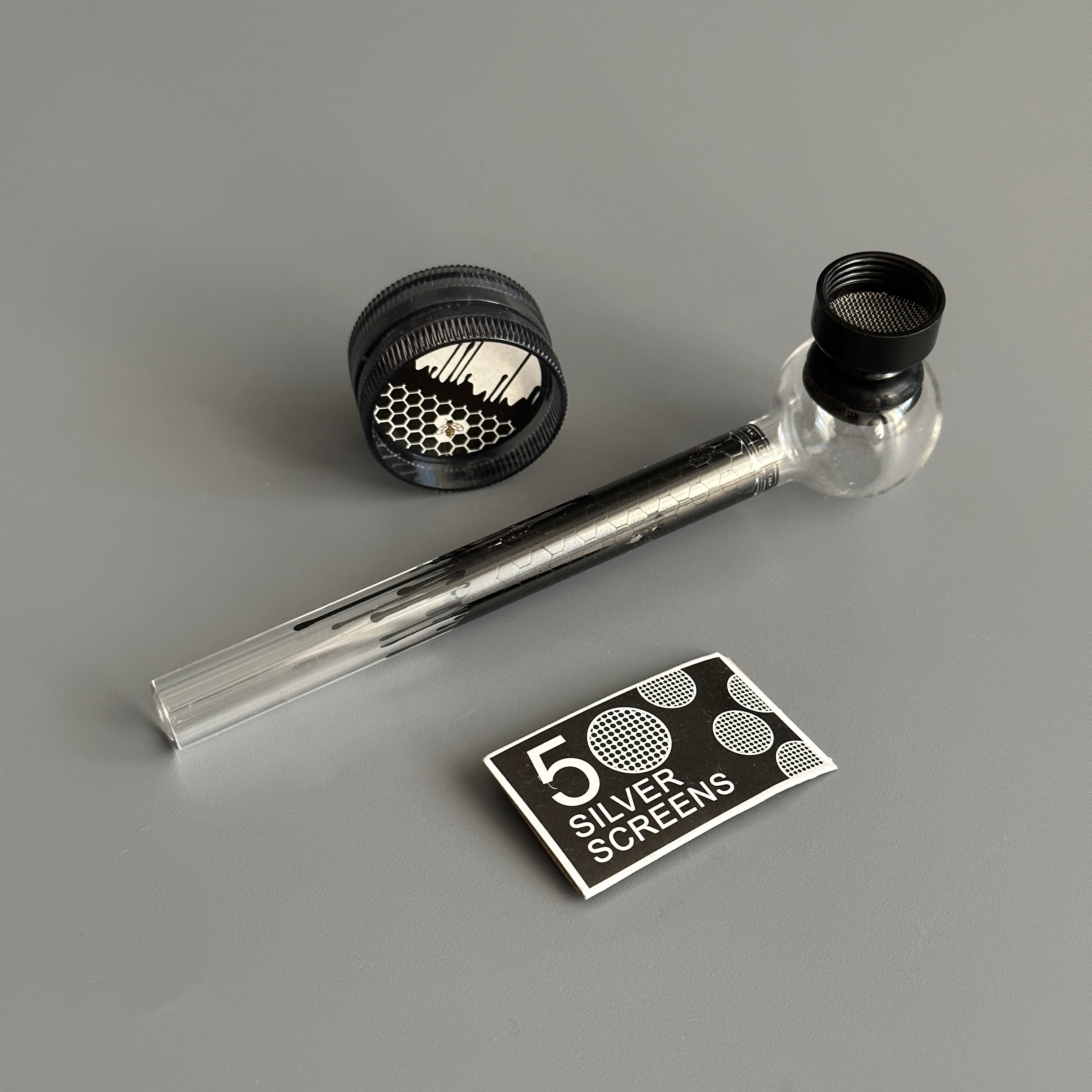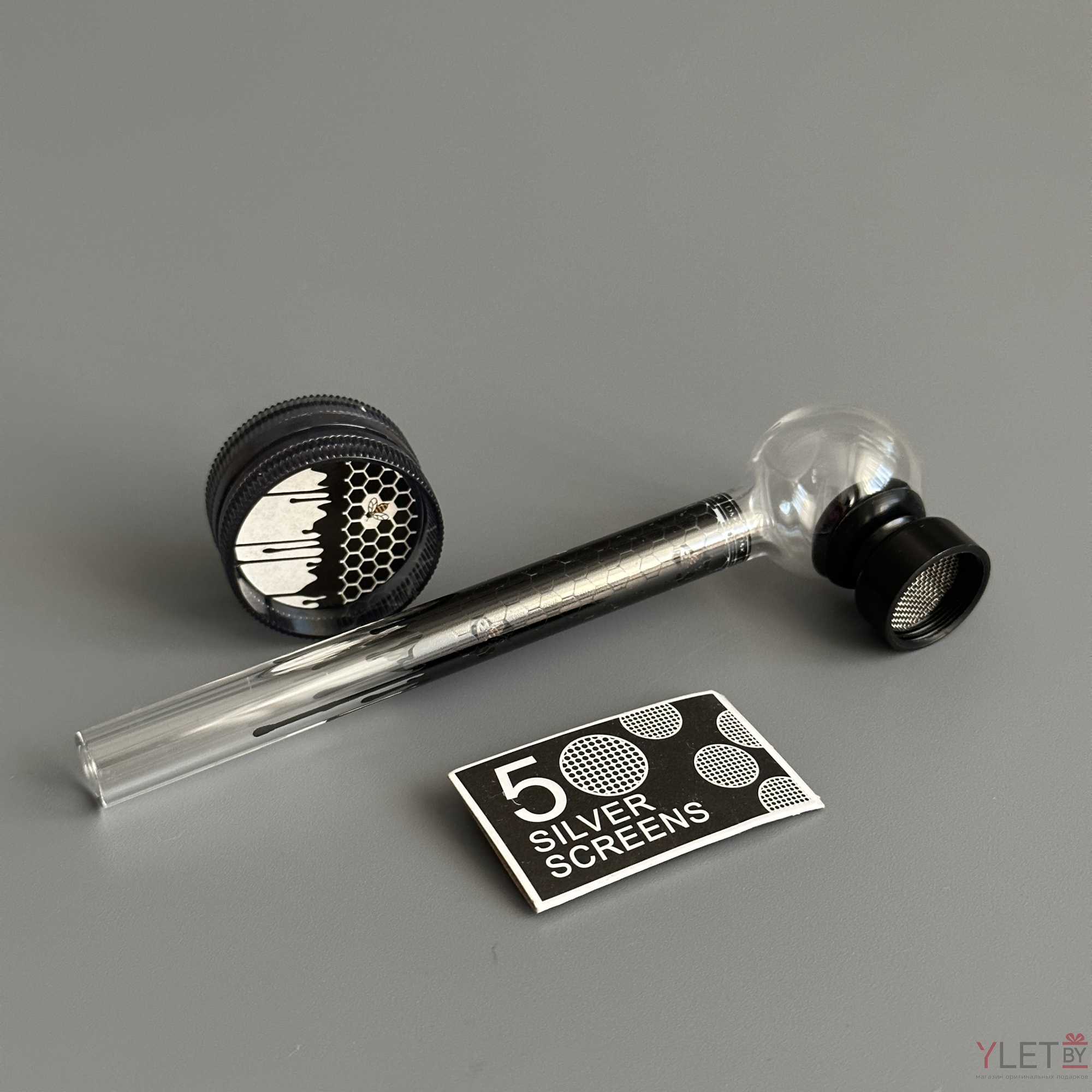 Курительный девайс стеклянная трубочка Соты с гриндером черный