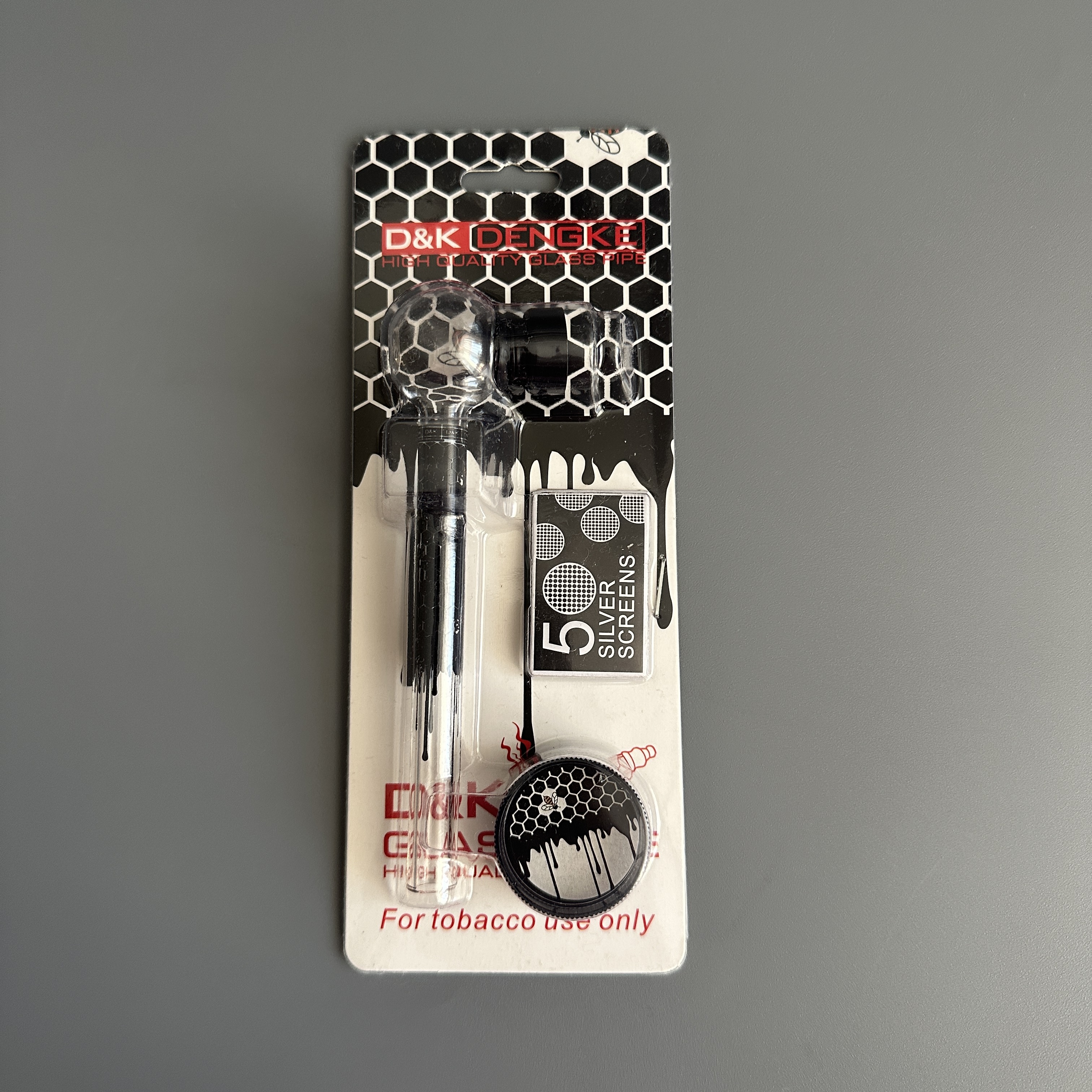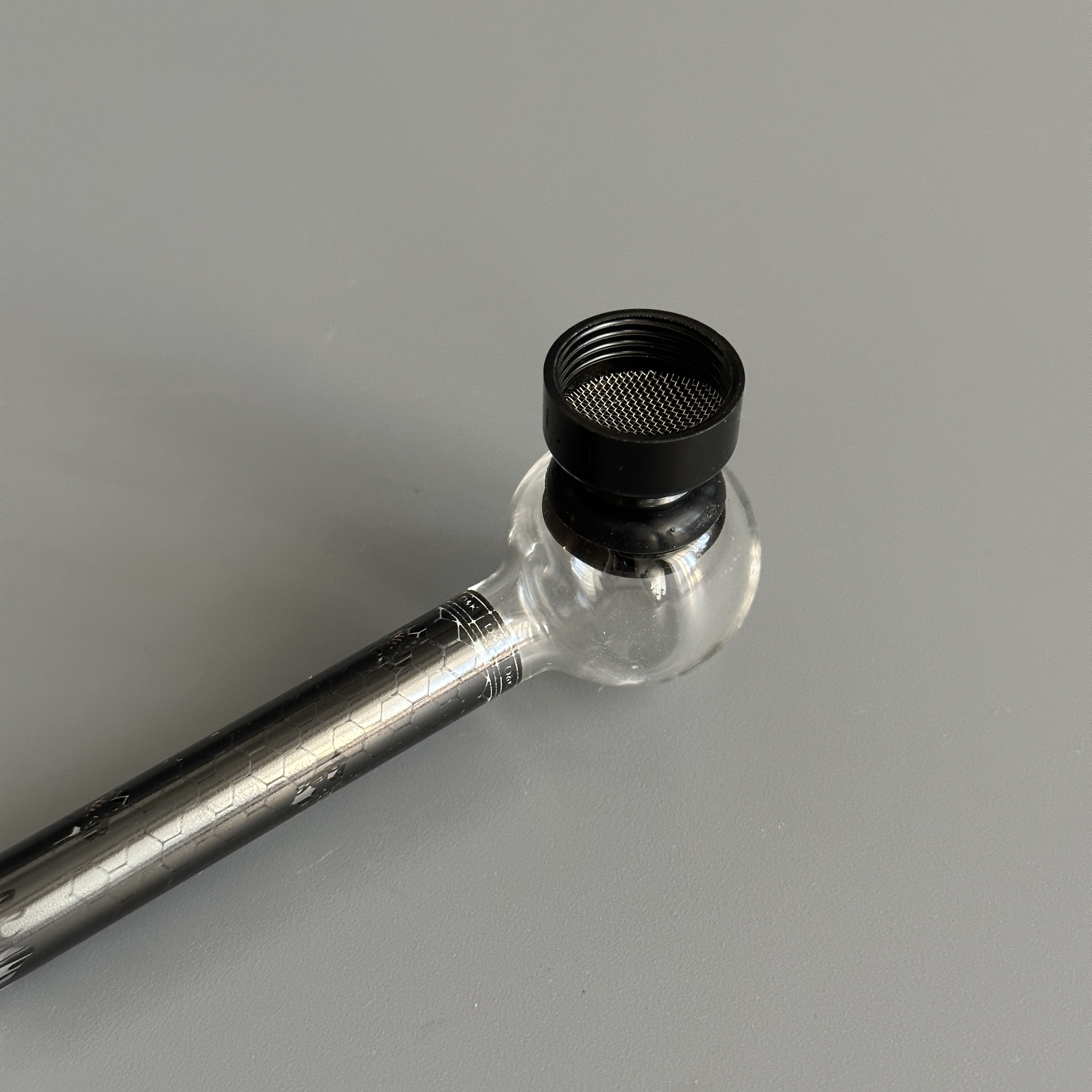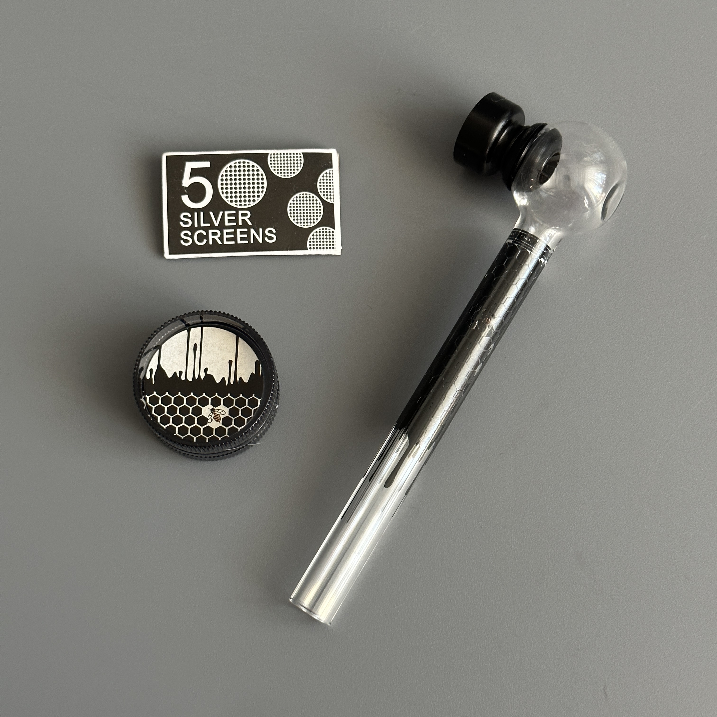 Курительный девайс стеклянная трубочка Соты с гриндером черный