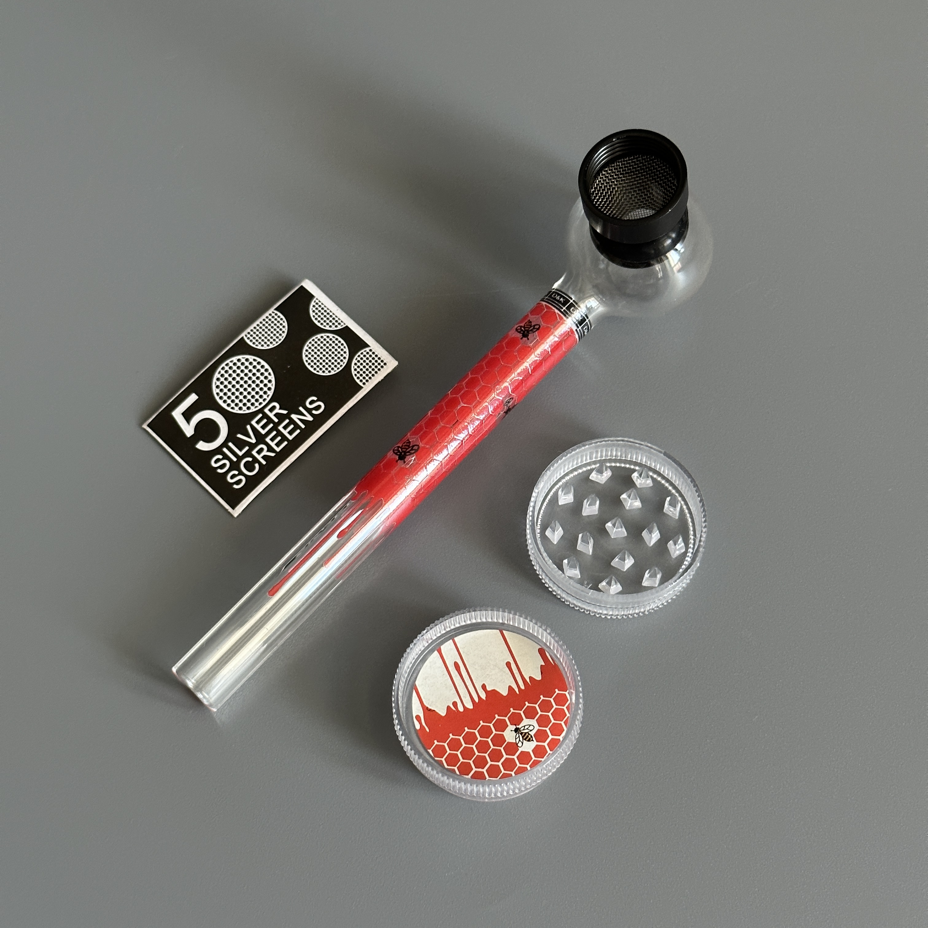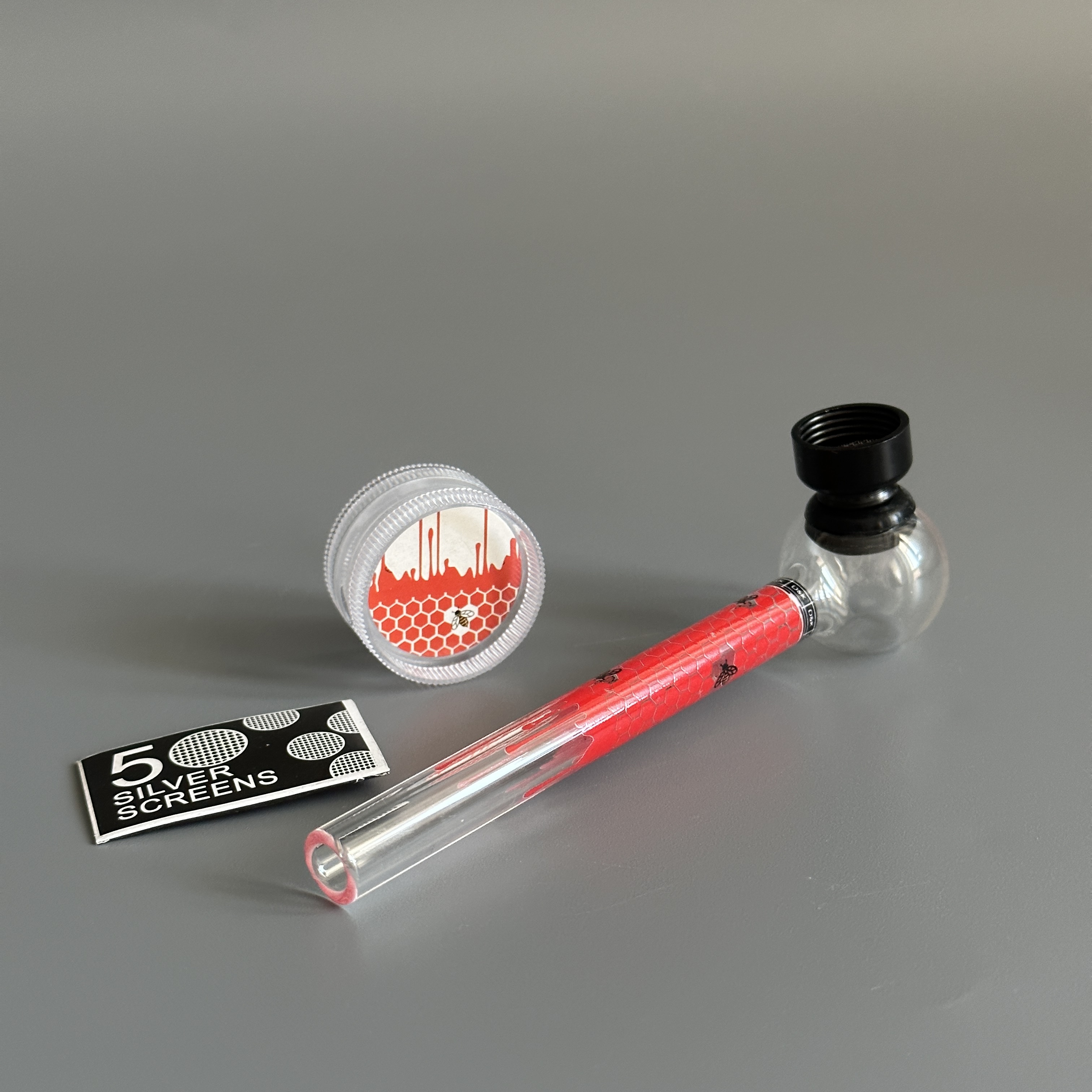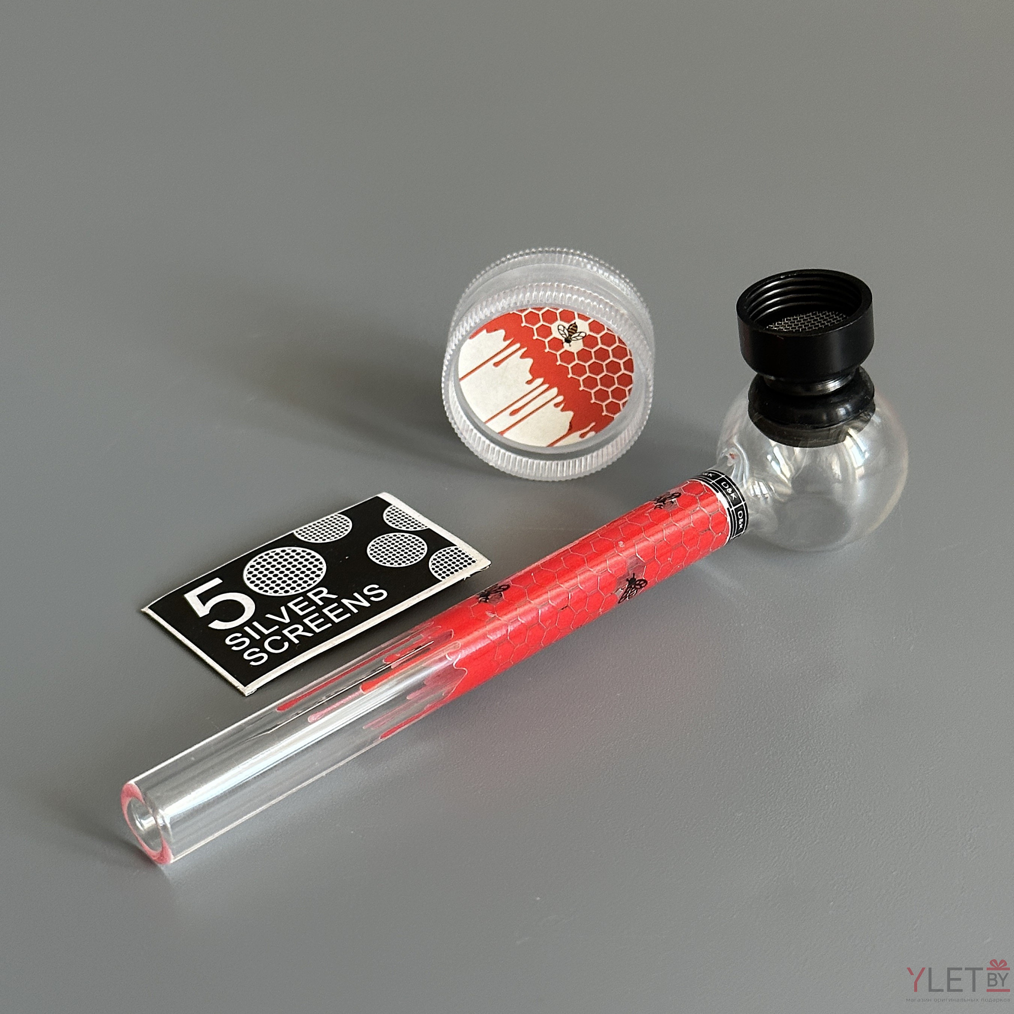 Курительный девайс стеклянная трубочка Соты с гриндером красный