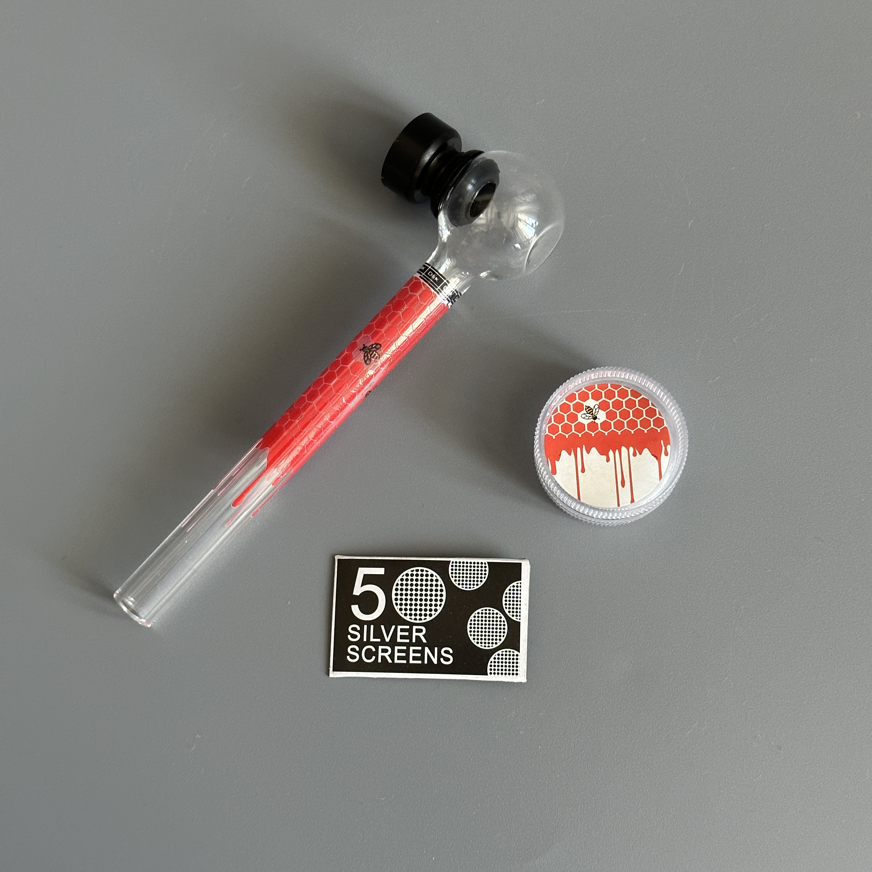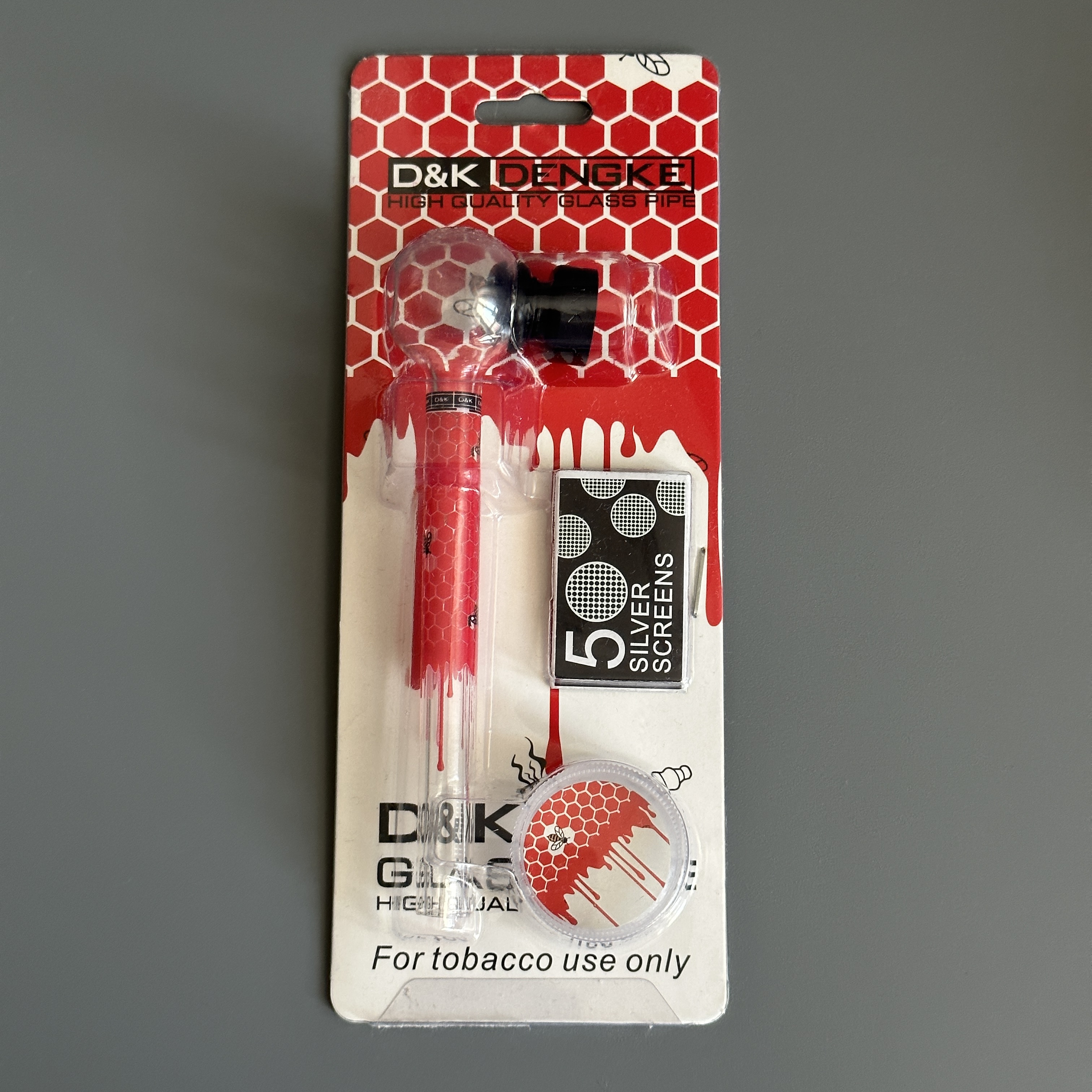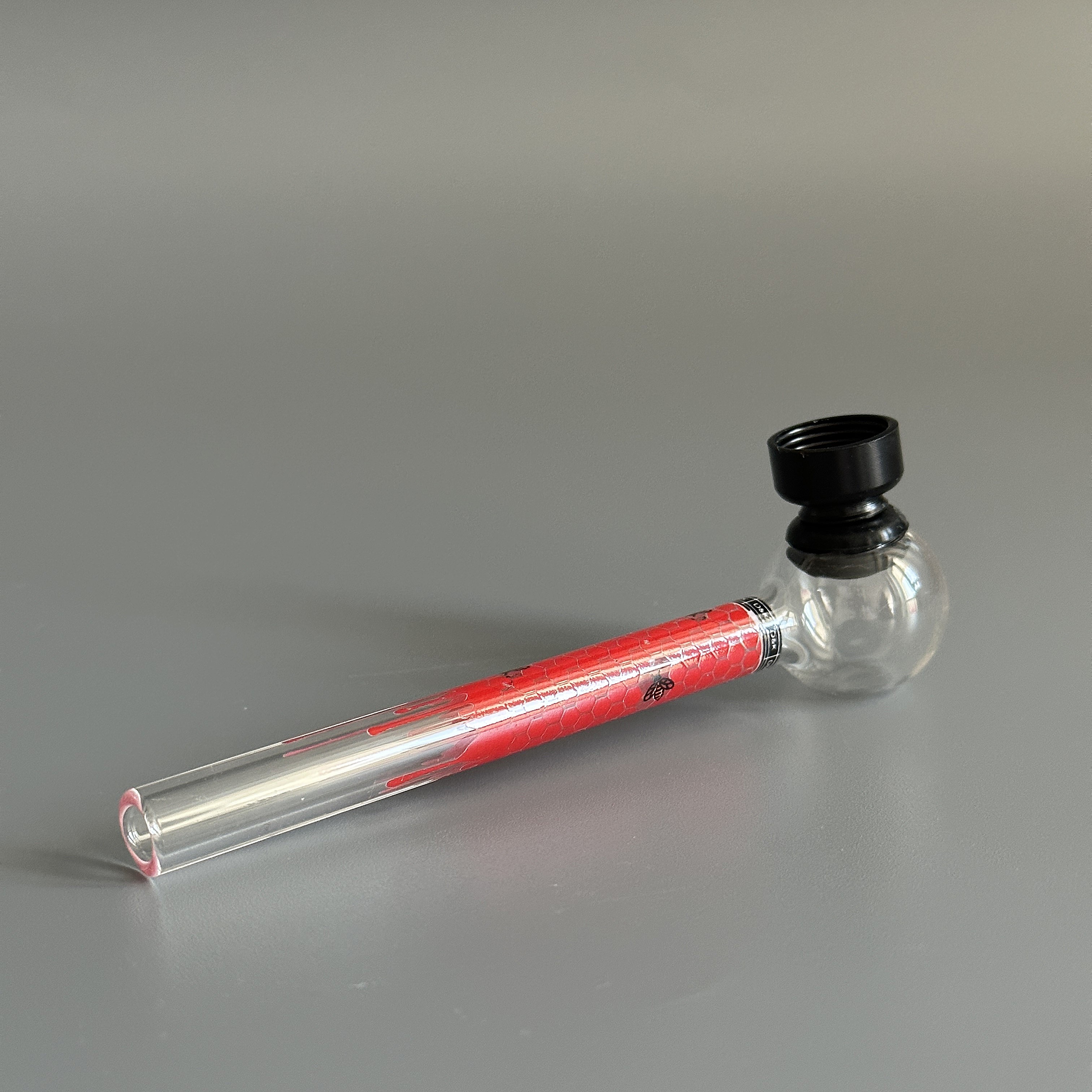 Курительный девайс стеклянная трубочка Соты с гриндером красный