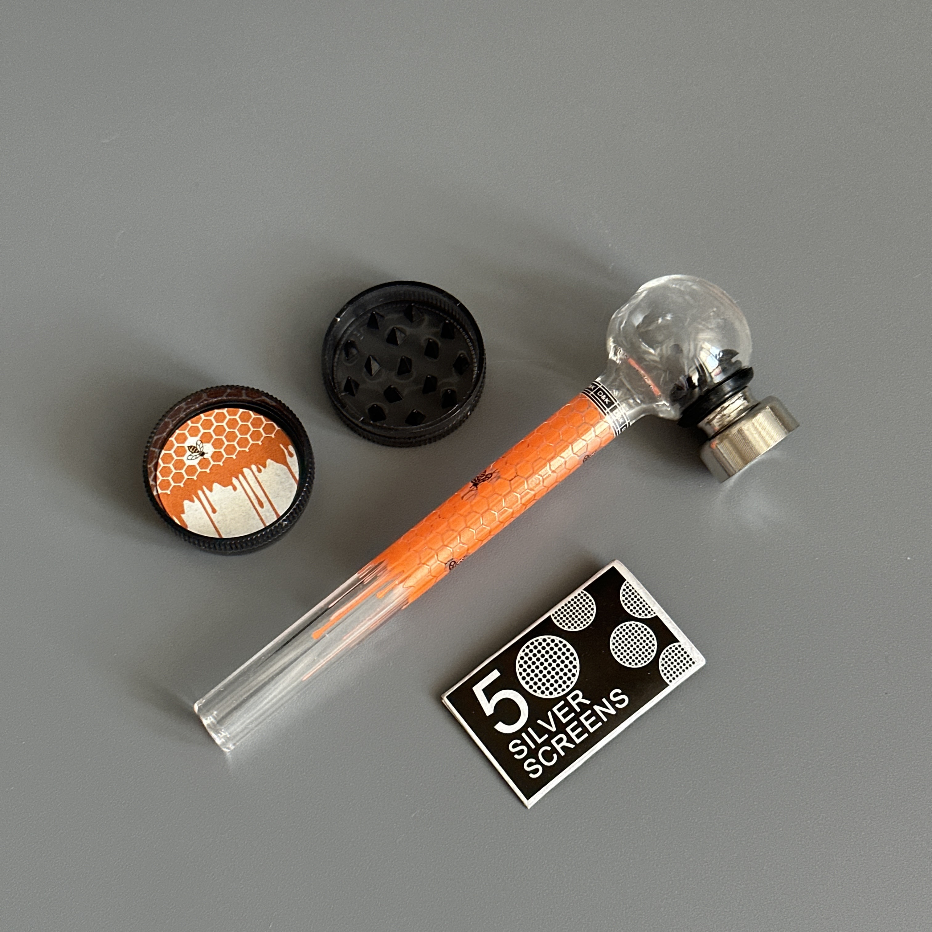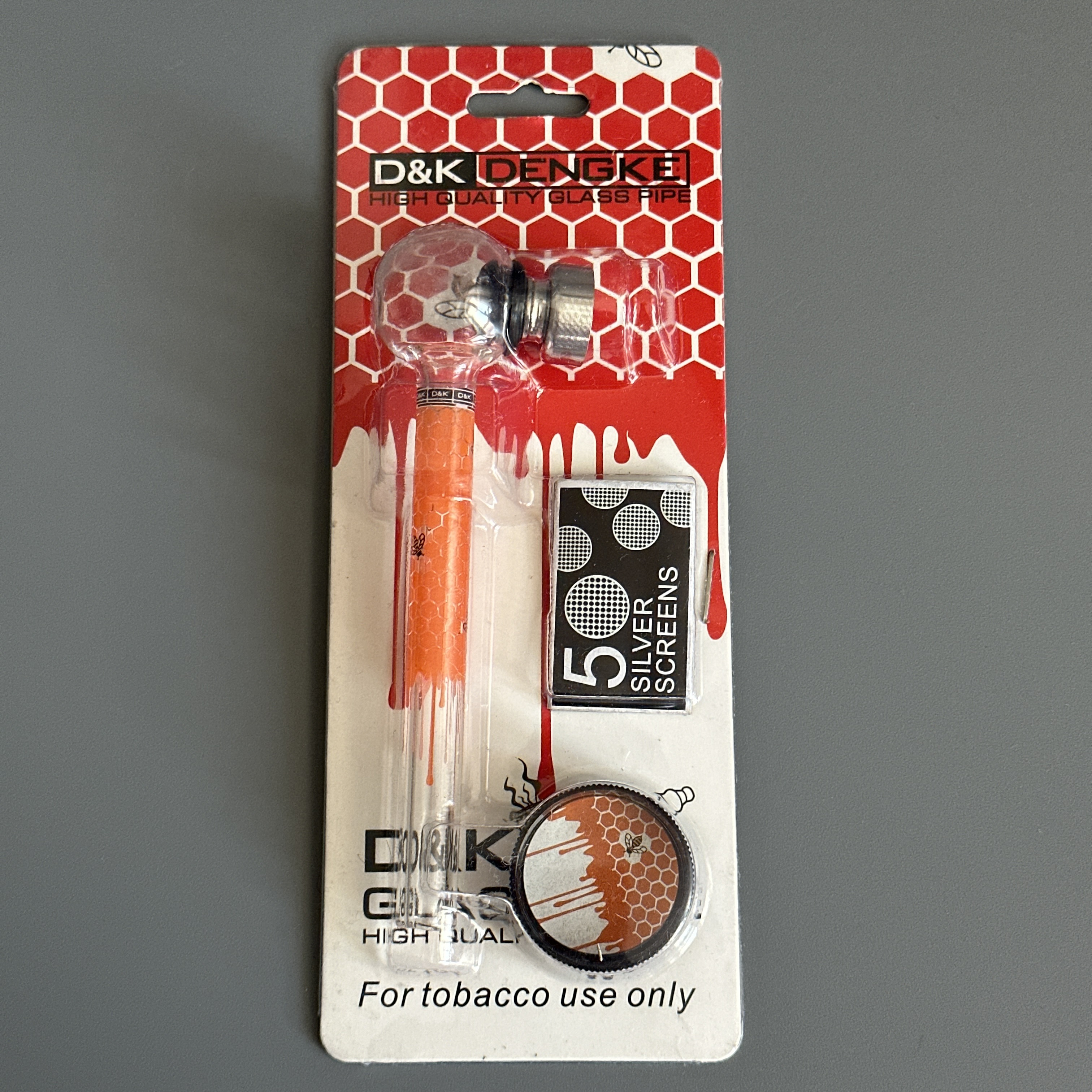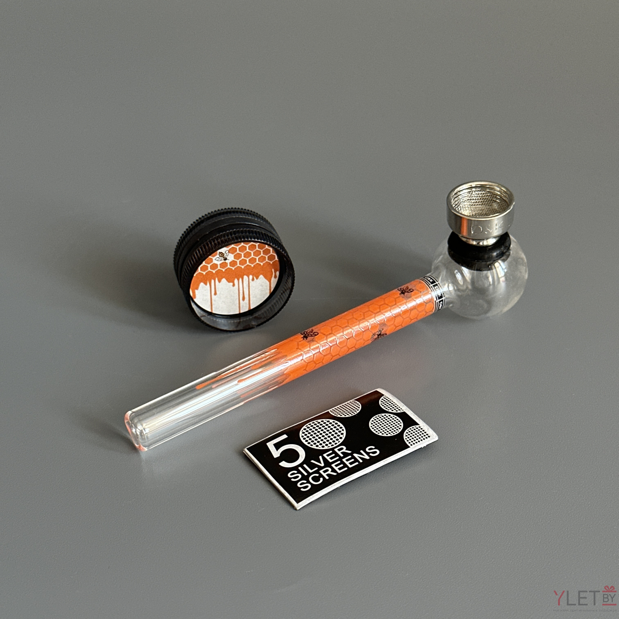 Курительный девайс стеклянная трубочка Соты с гриндером оранжевый