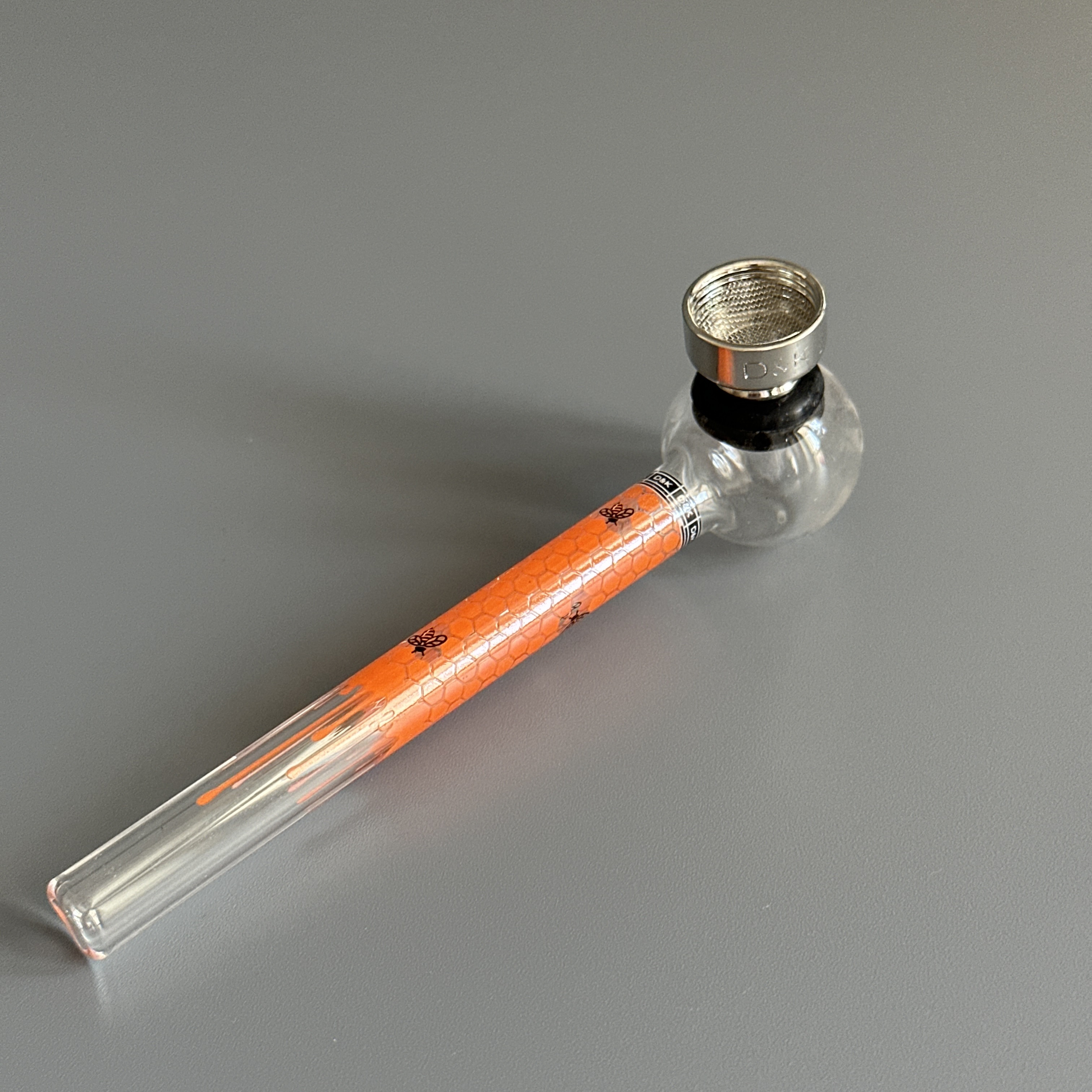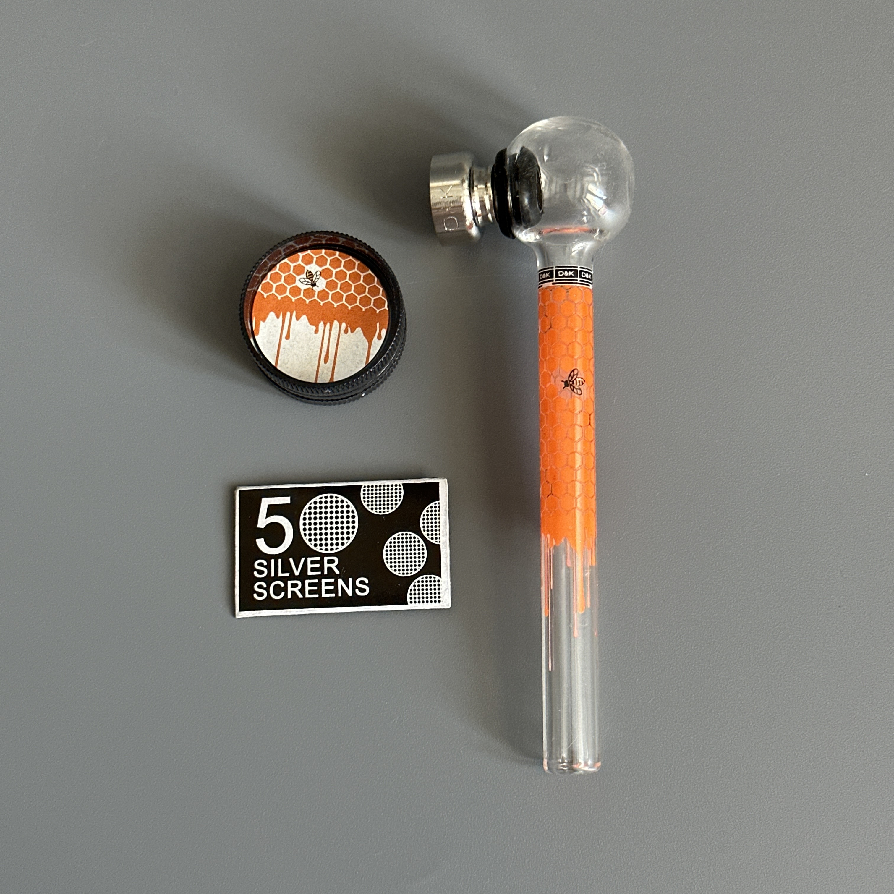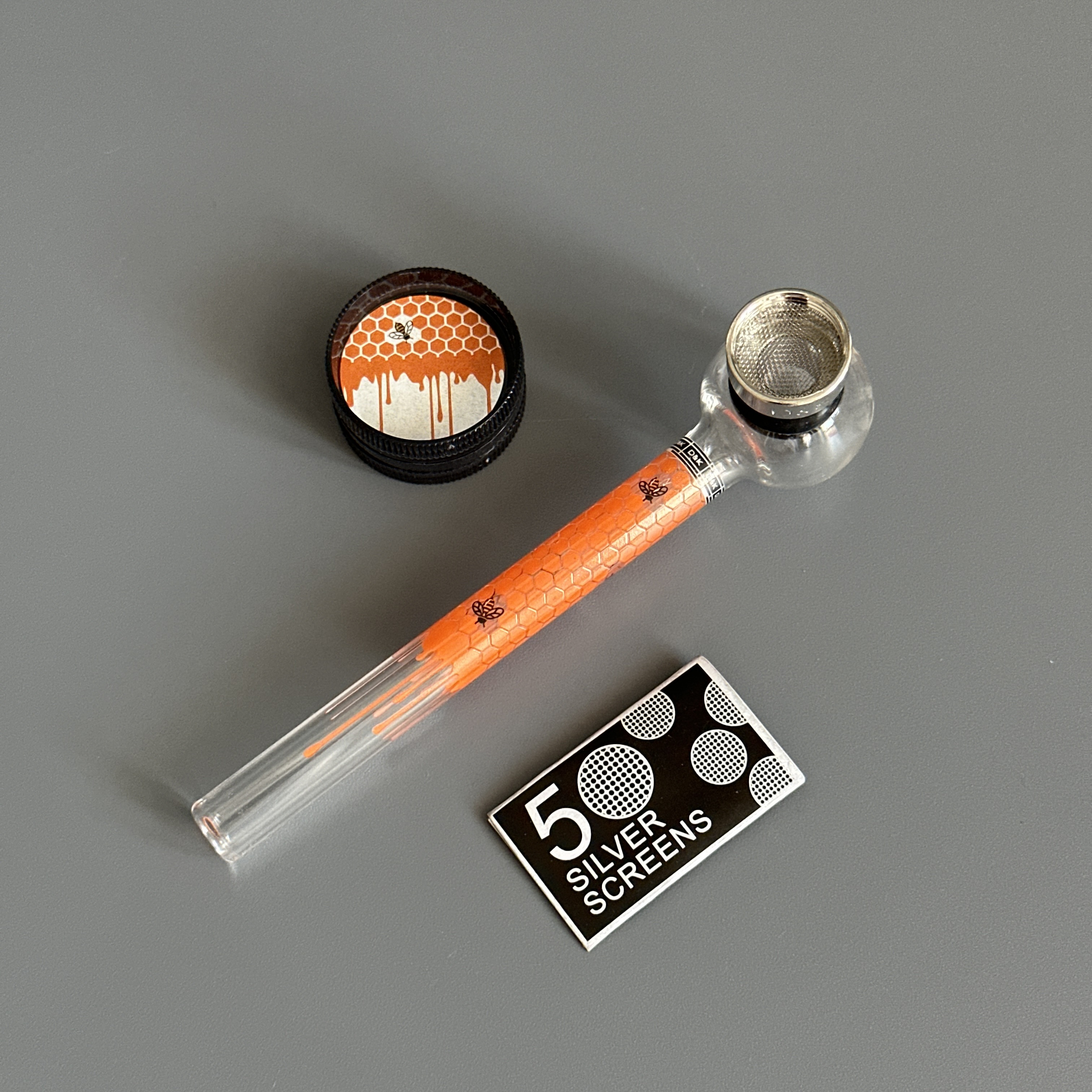 Курительный девайс стеклянная трубочка Соты с гриндером оранжевый