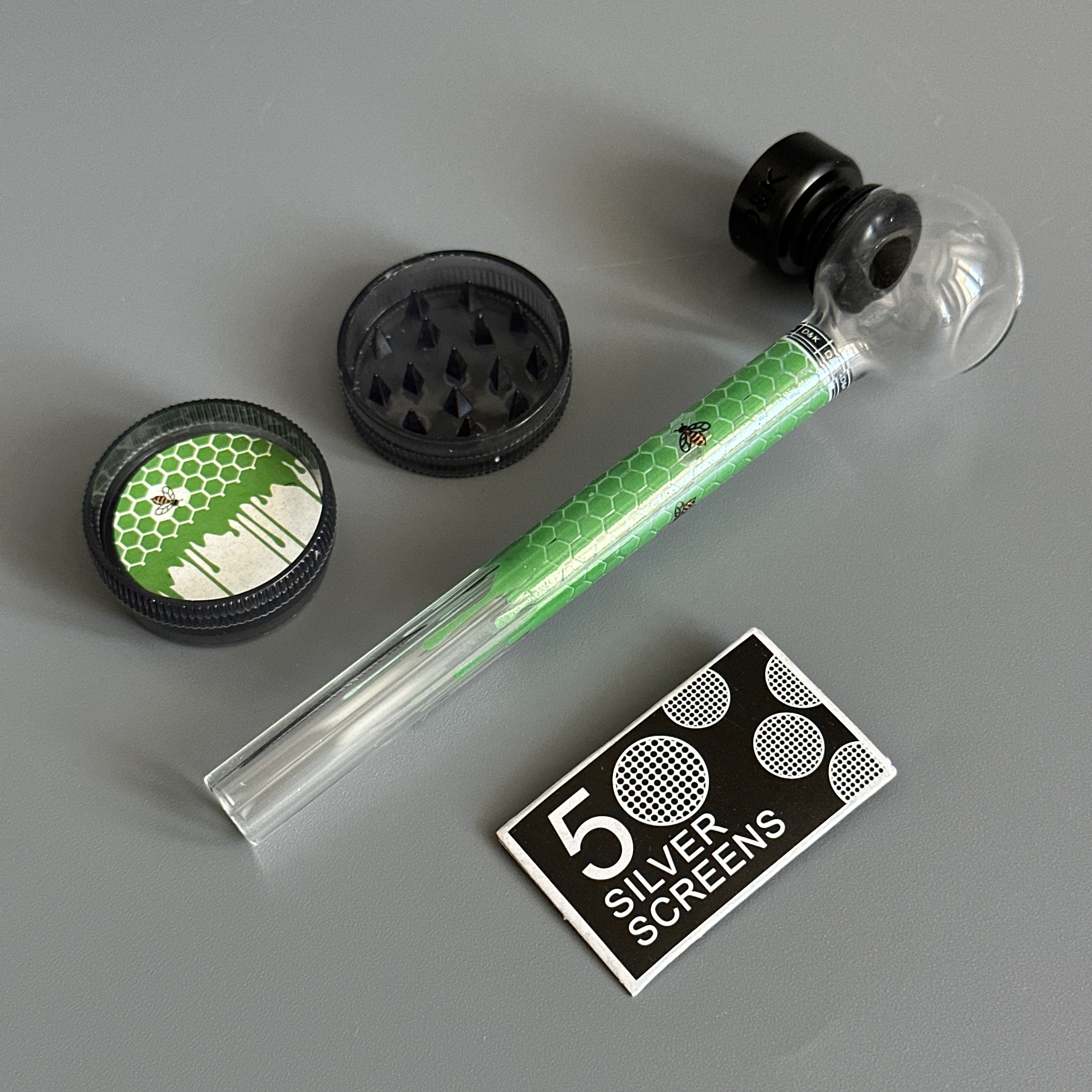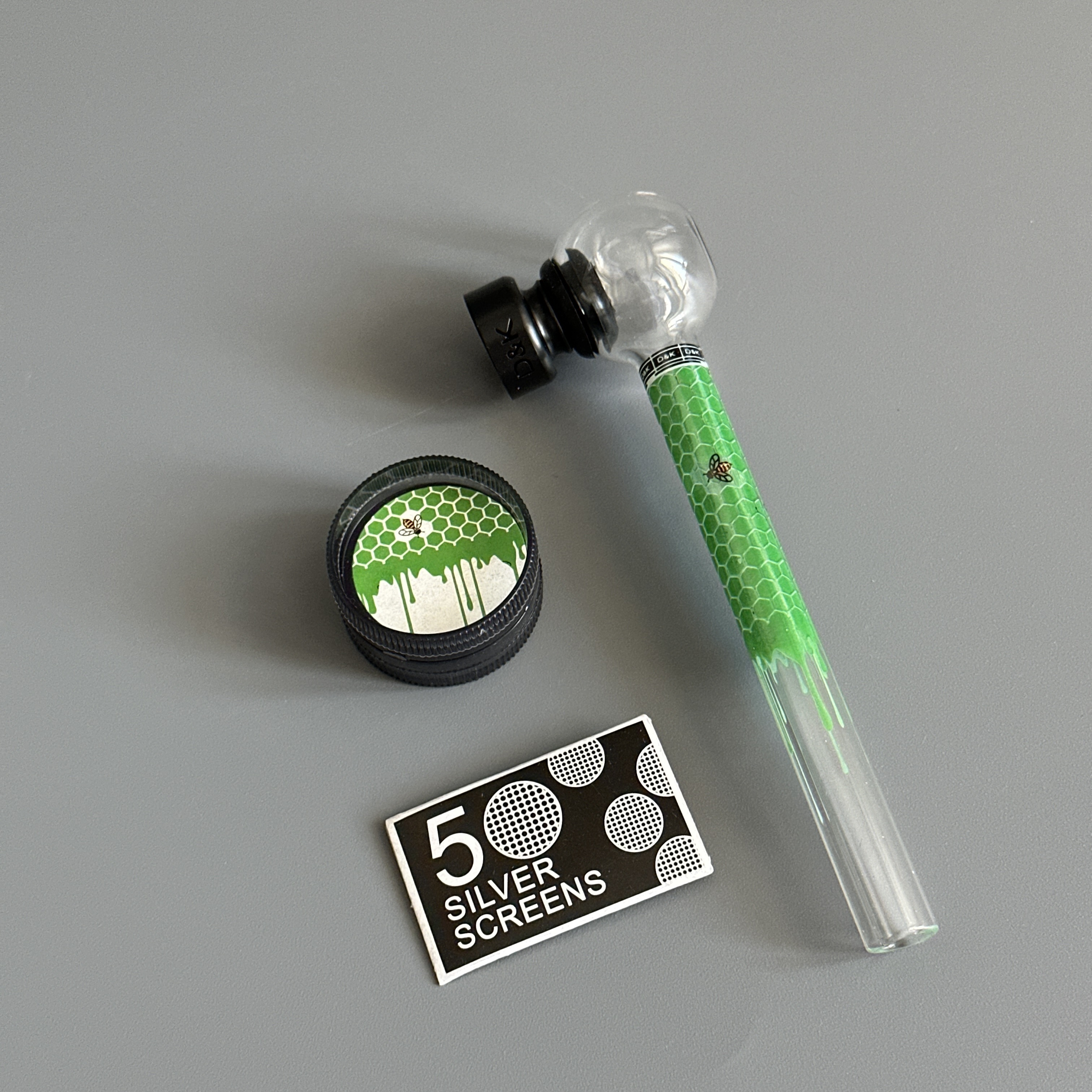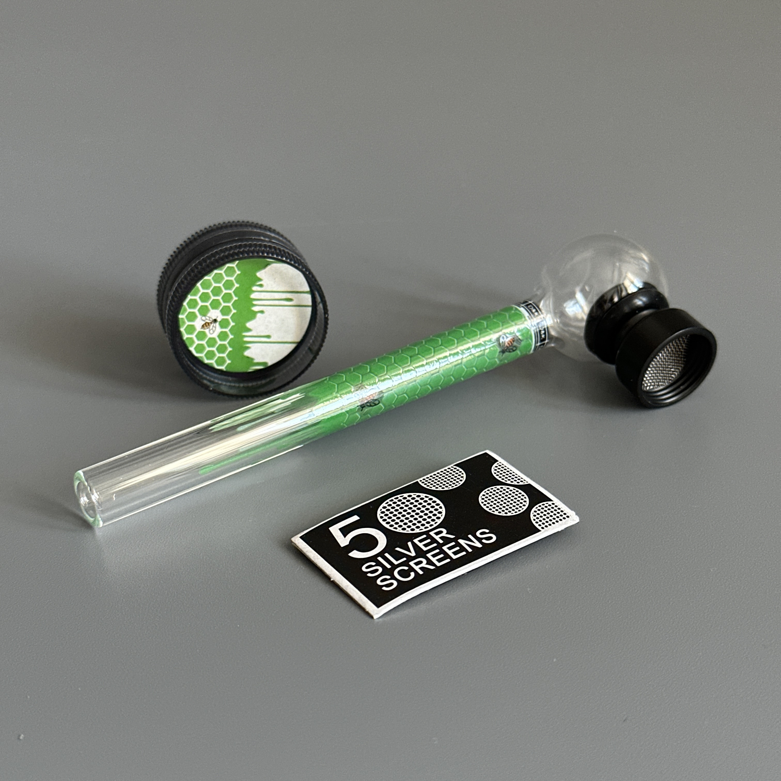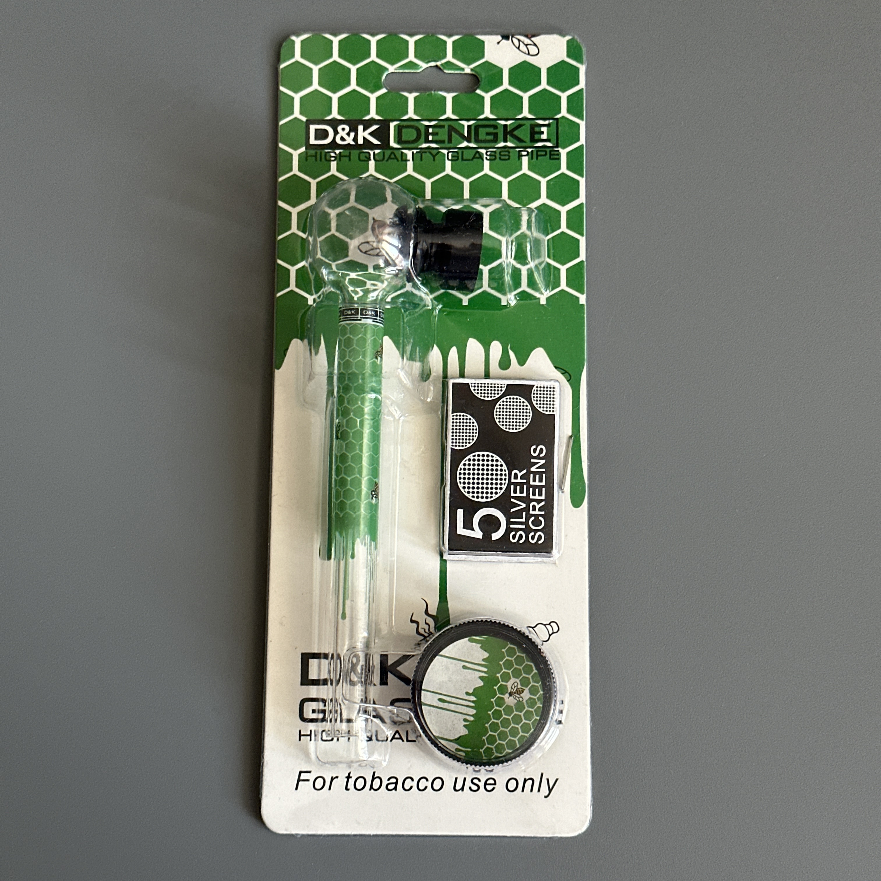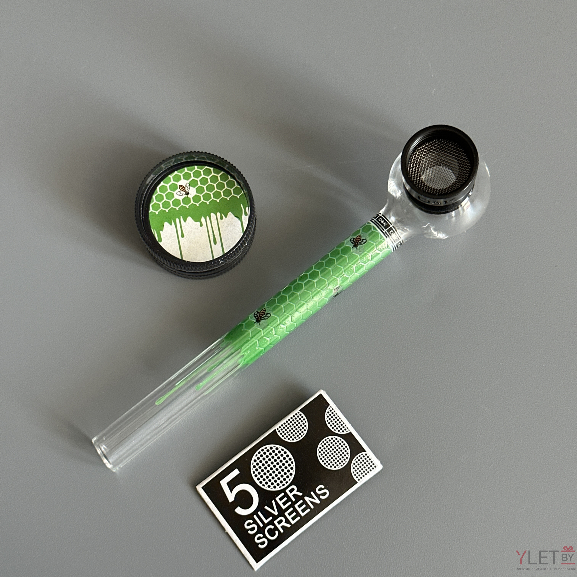 Курительный девайс стеклянная трубочка Соты с гриндером зеленый