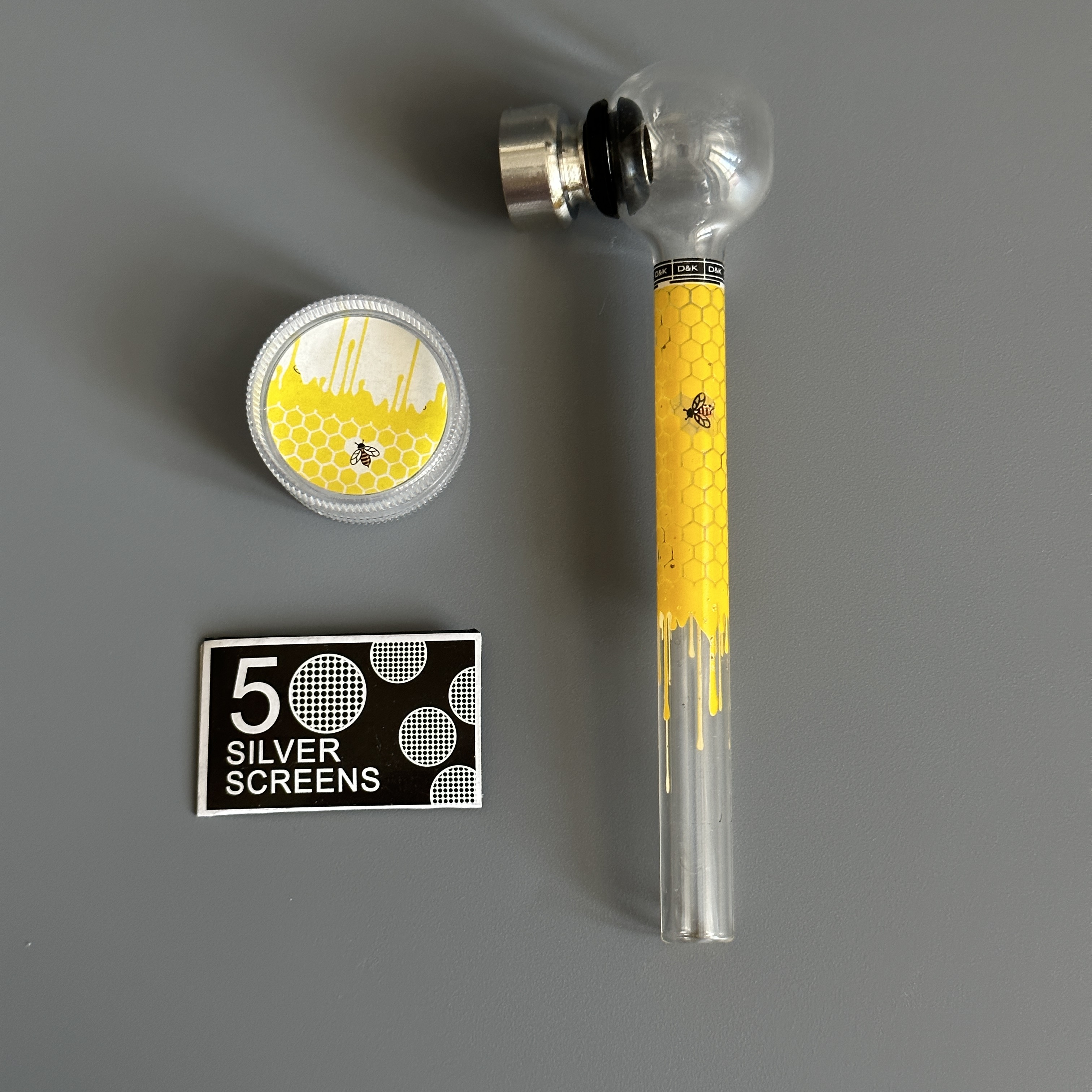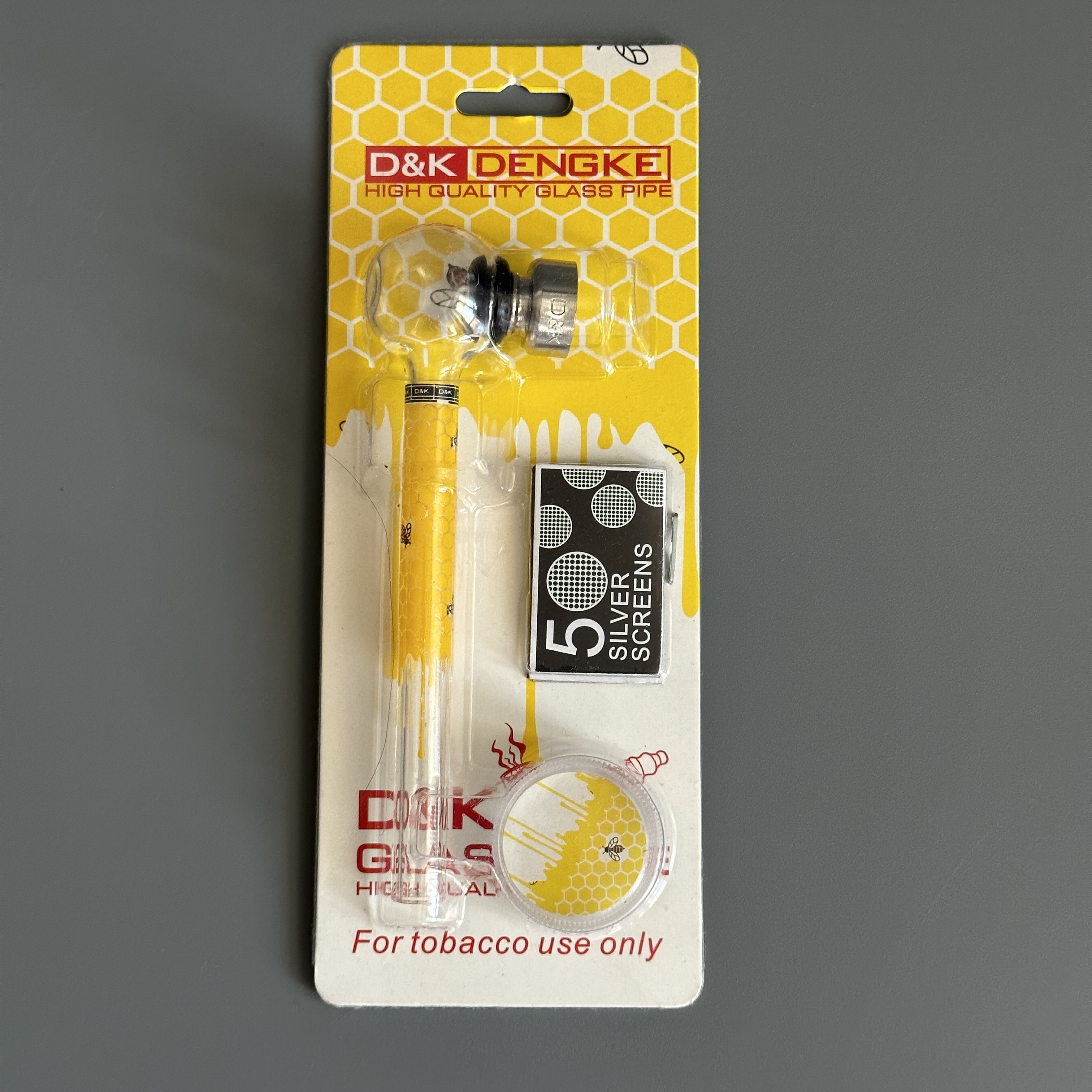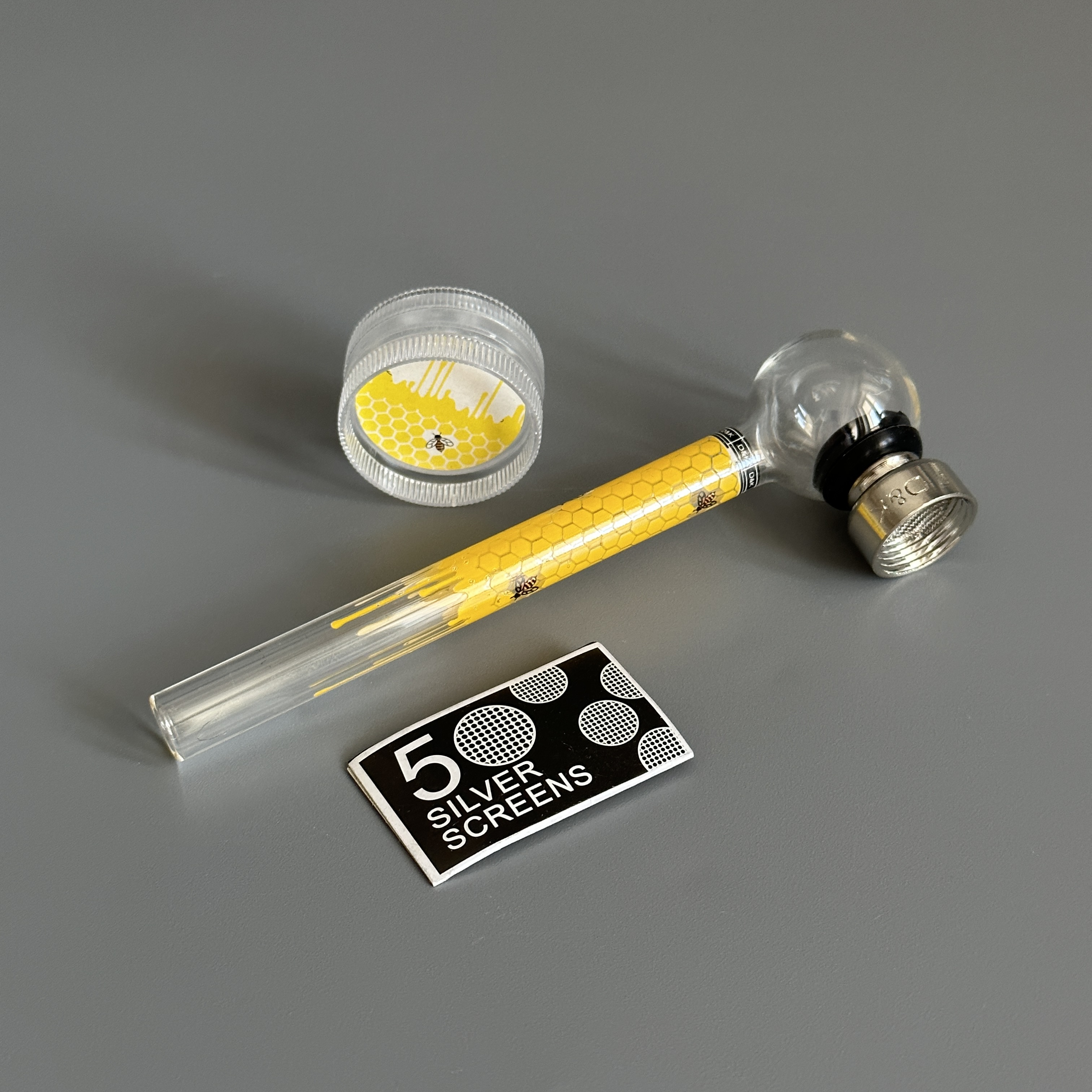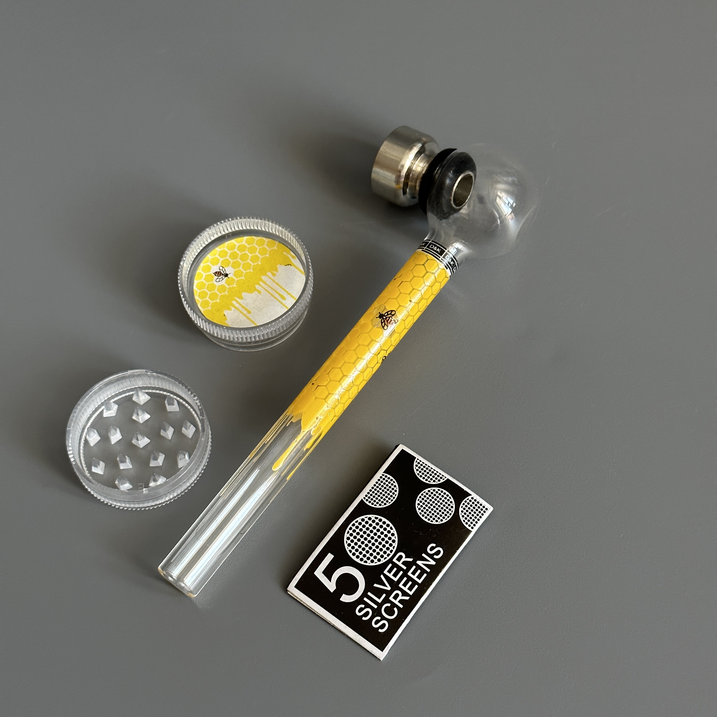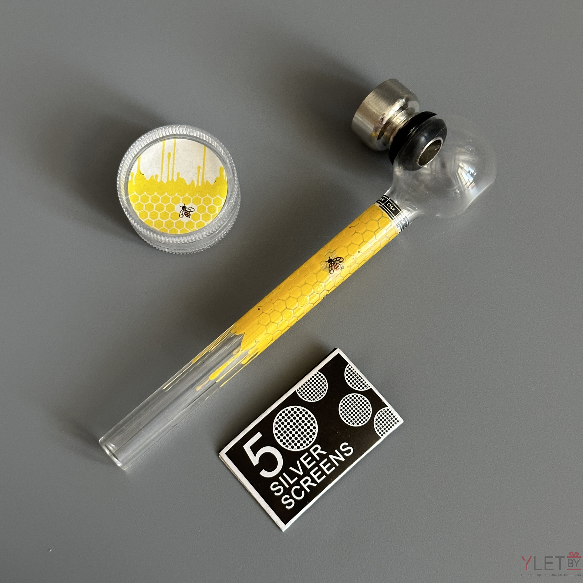 Курительный девайс стеклянная трубочка Соты с гриндером желтый