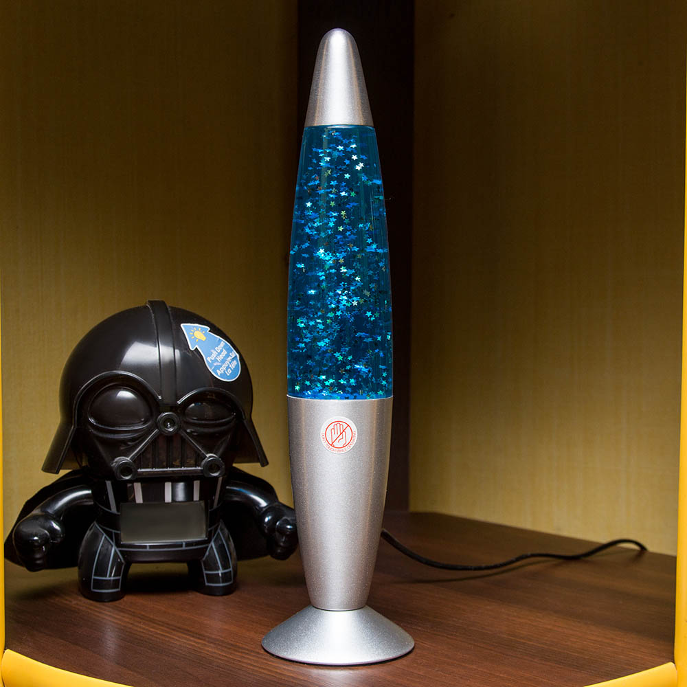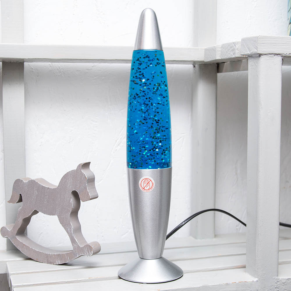 Лава лампа с блестками в сером корпусе 42 см Синяя