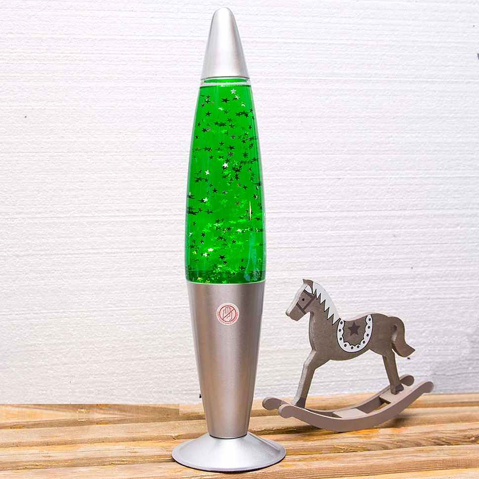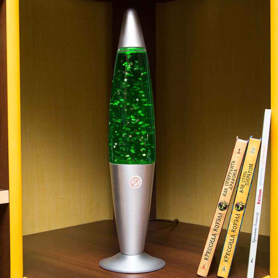 Лава лампа с блестками в сером корпусе 42 см Зеленая