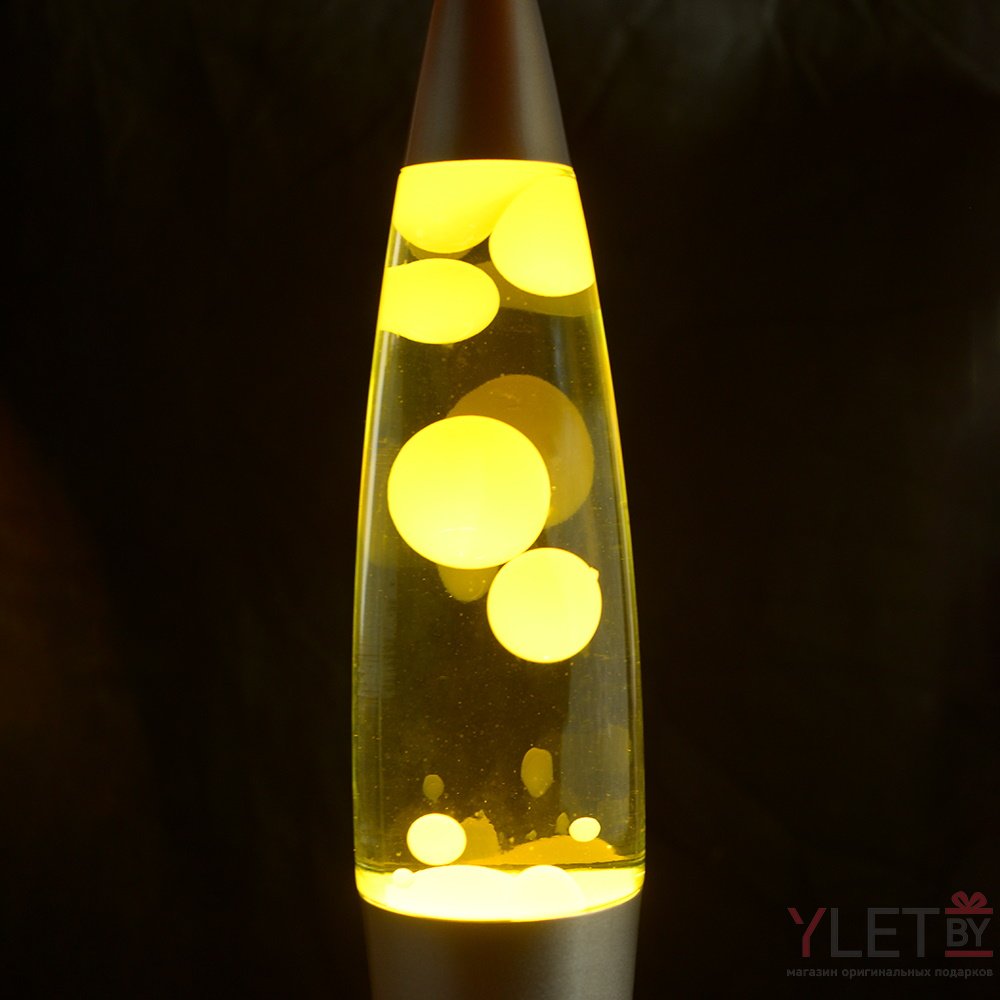 Лава лампа с воском в сером корпусе 35 см Желтая